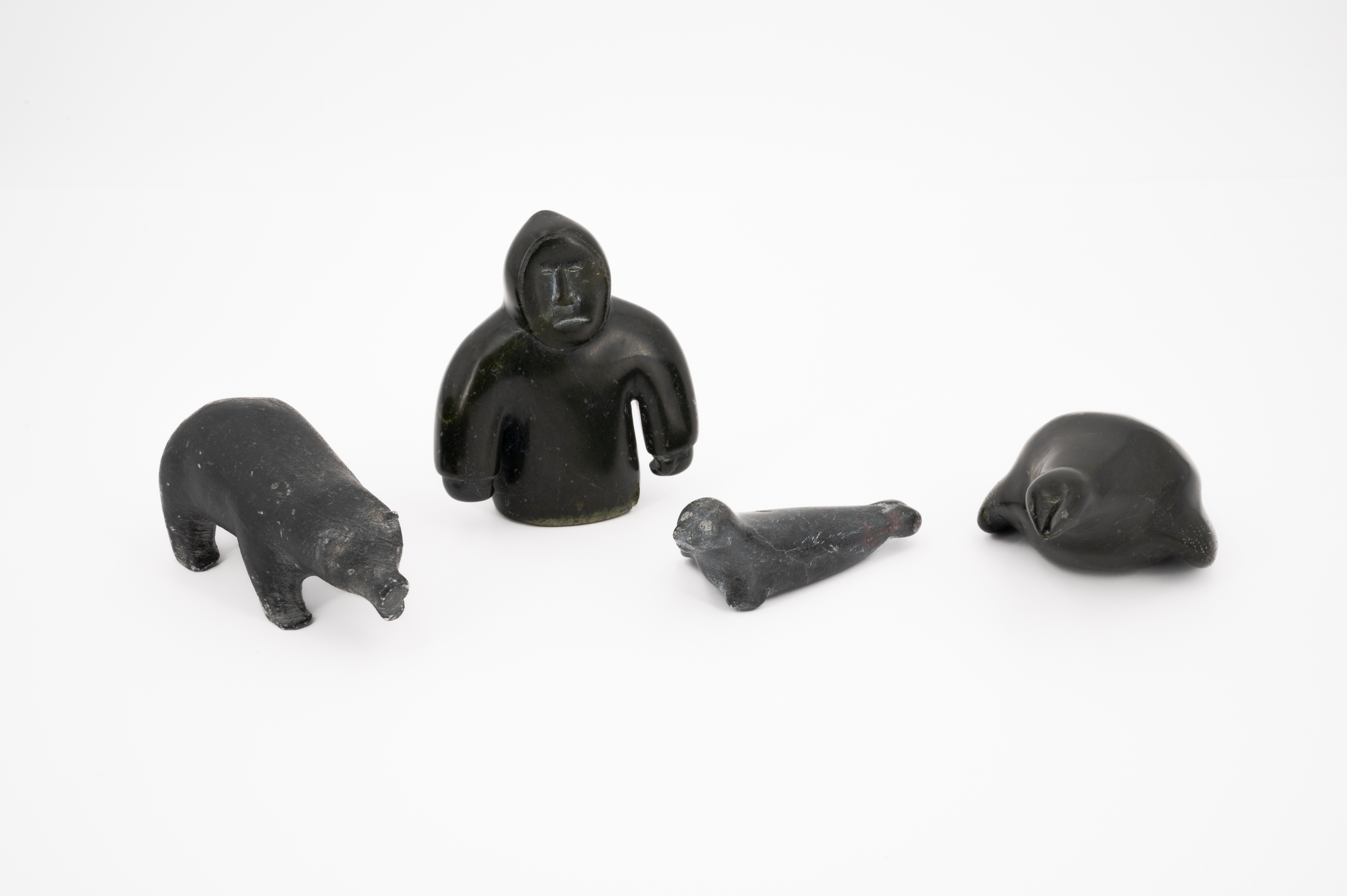 GRUPPE VON VIER INUIT STEINFIGUREN.