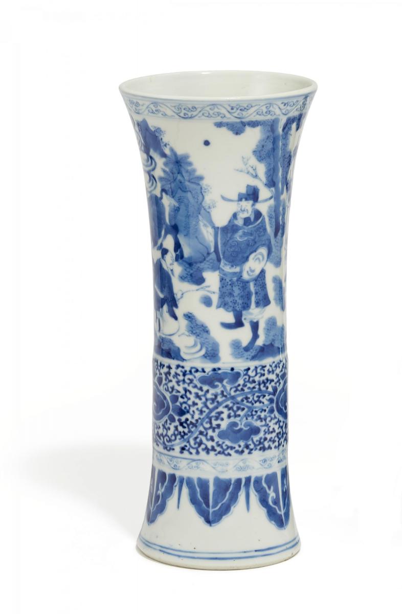 Technik: Porzellan, bemalt unter der Glasur in abgestuften Blautönen. Boden unglasiert.