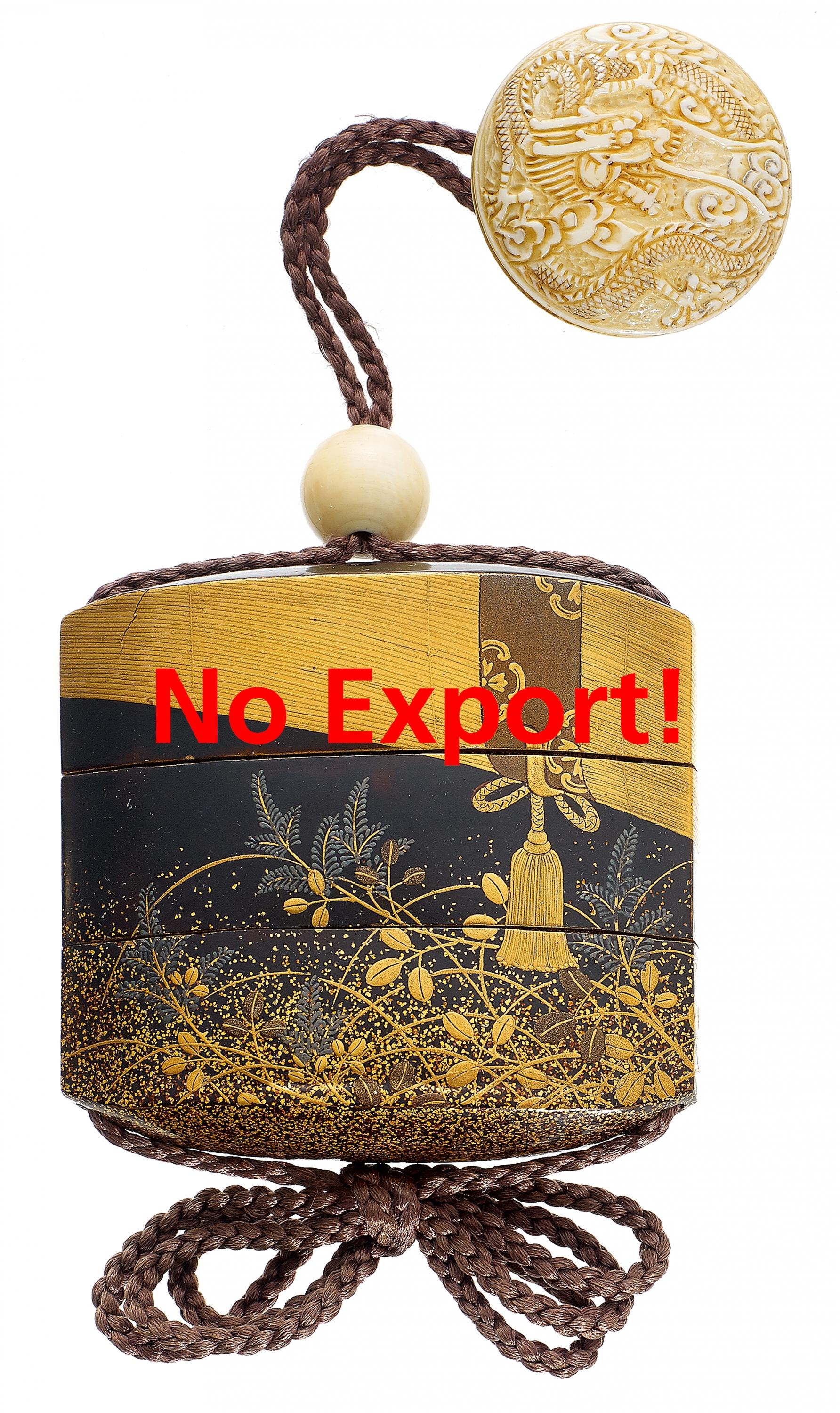 Zustand B. Beilage: Netsuke: Manju mit Drache. Ojime. Beide aus maritimem Elfenbein.
