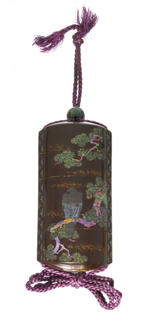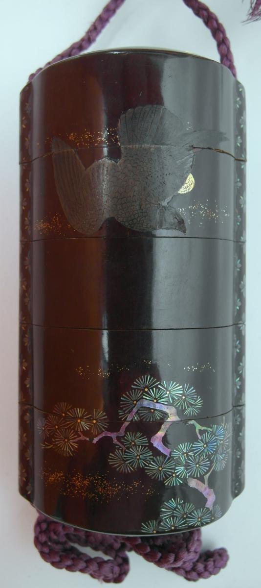 INRÔ MIT GREIFVÖGELN UND KIEFER.