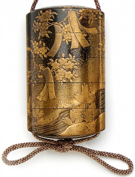INRO: FÜNFTEILIG, TANZAKU IN KIRSCHBAUM.