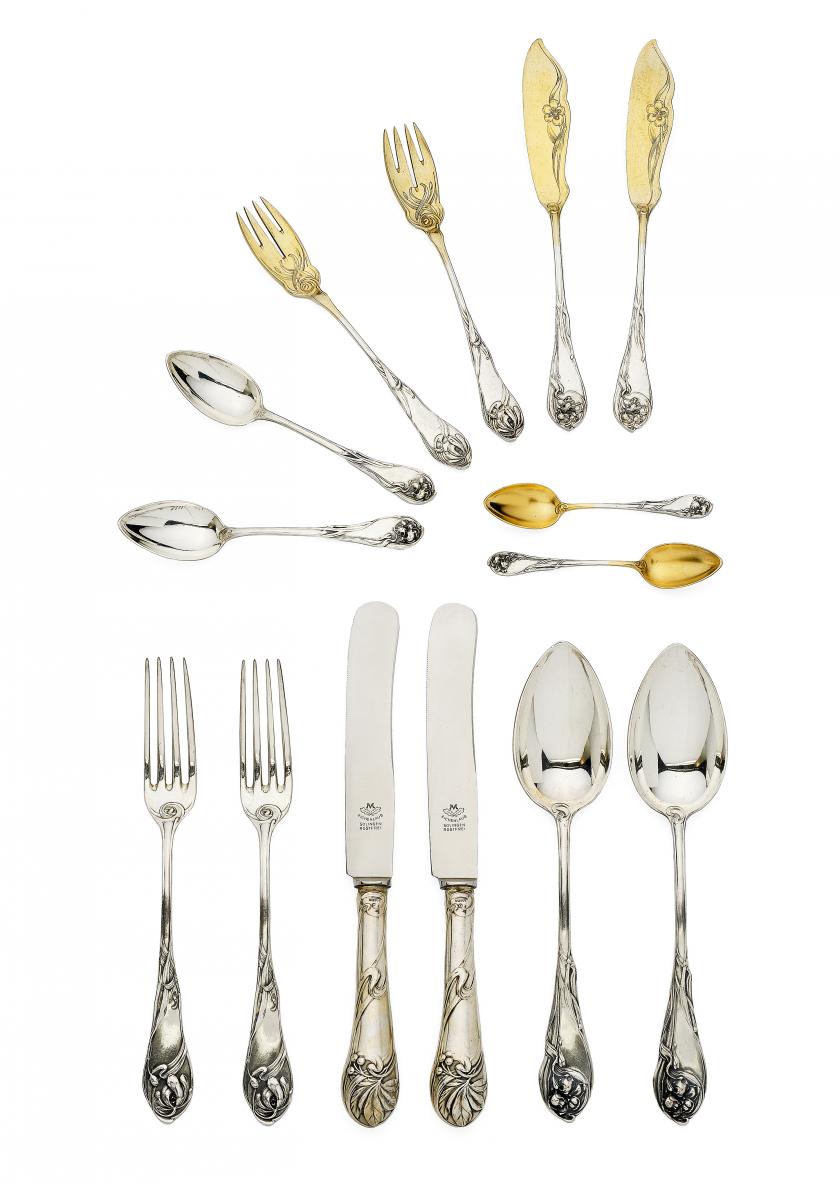 JUGENDSTIL BESTECK FÜR ZWÖLF PERSONEN MIT IRIS.