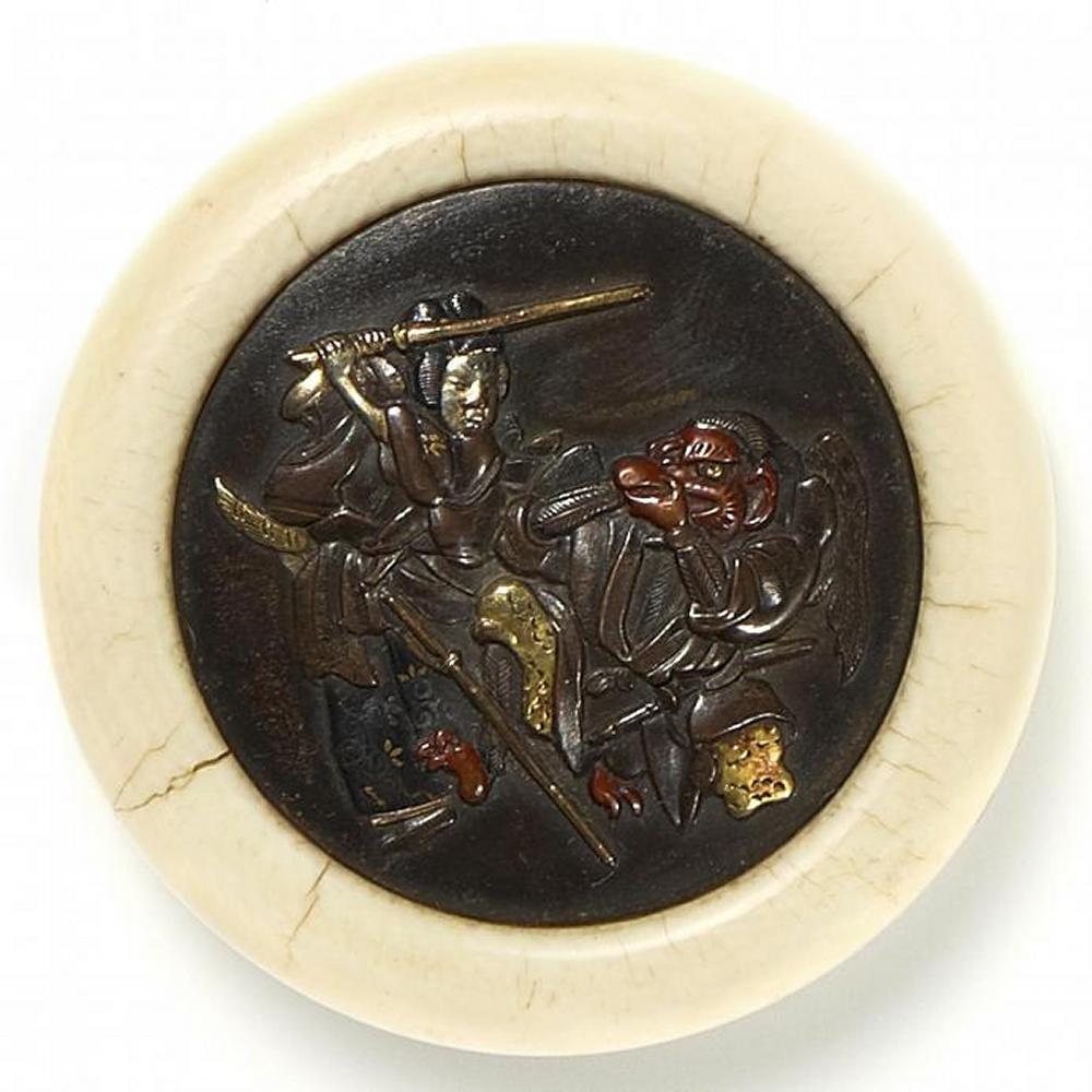 KAGAMIBUTA: YOSHITSUNE, KAPSEL ELFENBEIN, PLATTE SHIBUICHI.