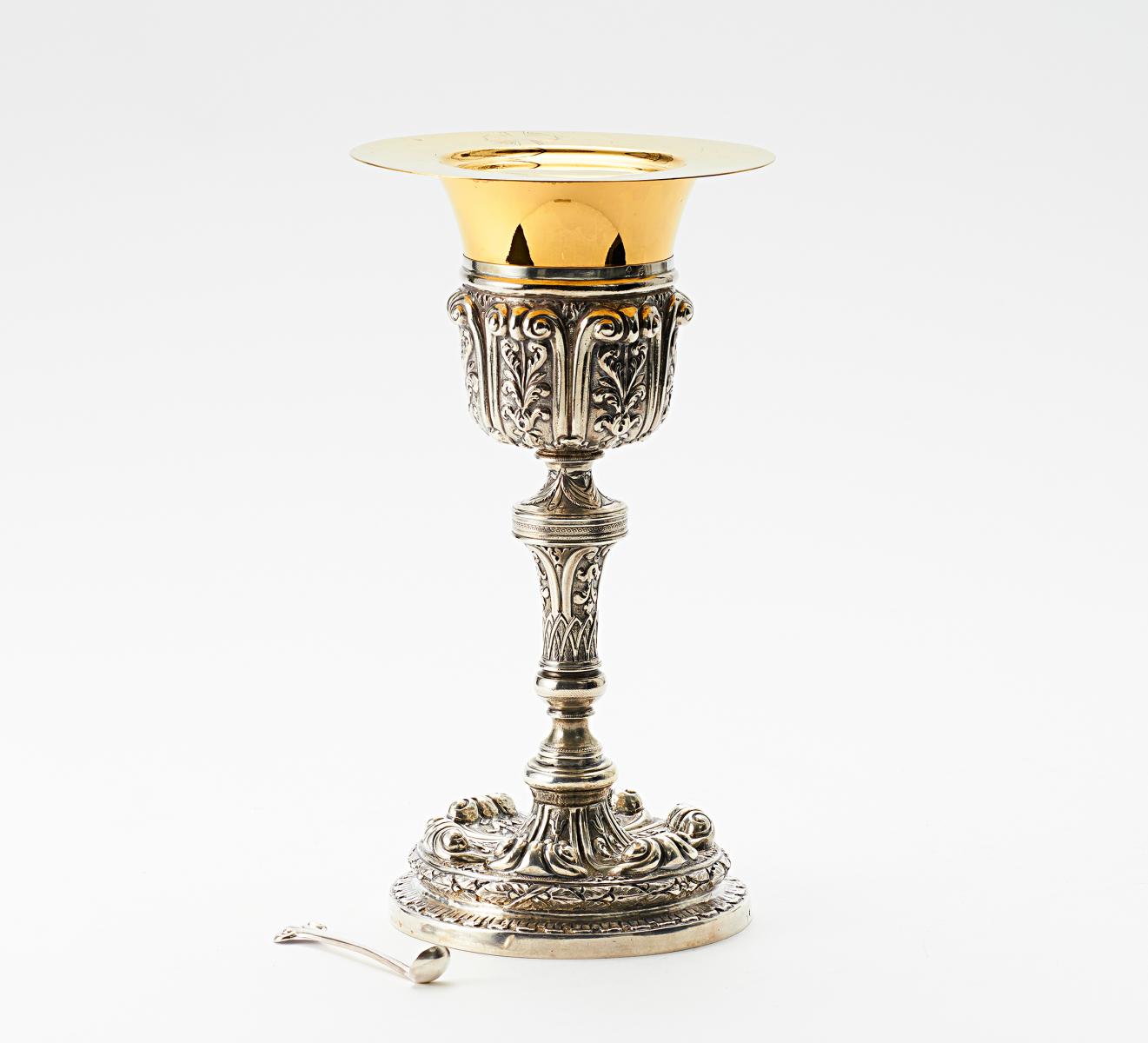KELCH MIT FLORALEM DEKOR UND PATENE.