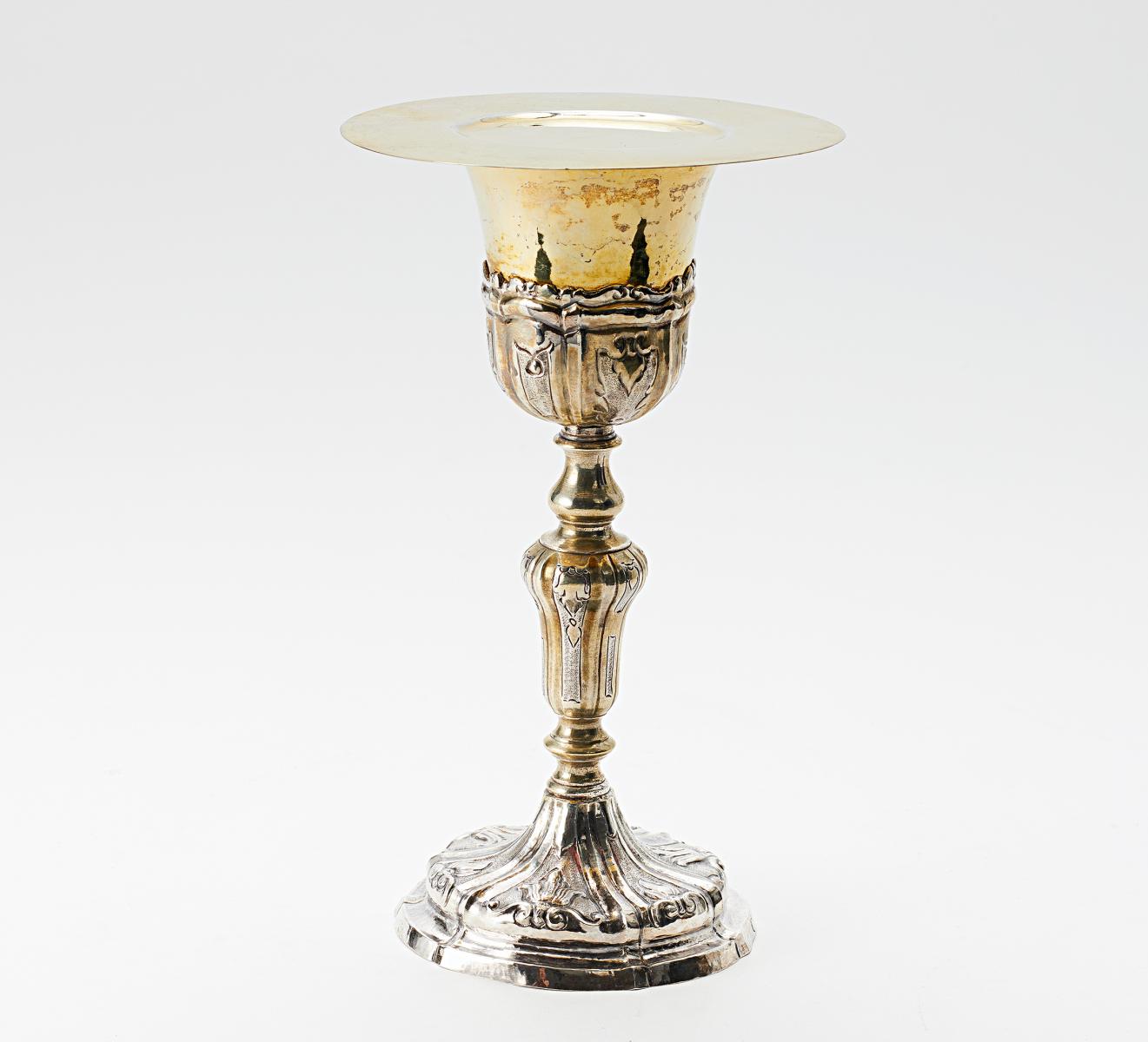 KELCH MIT FLORALEM DEKOR UND PATENE.