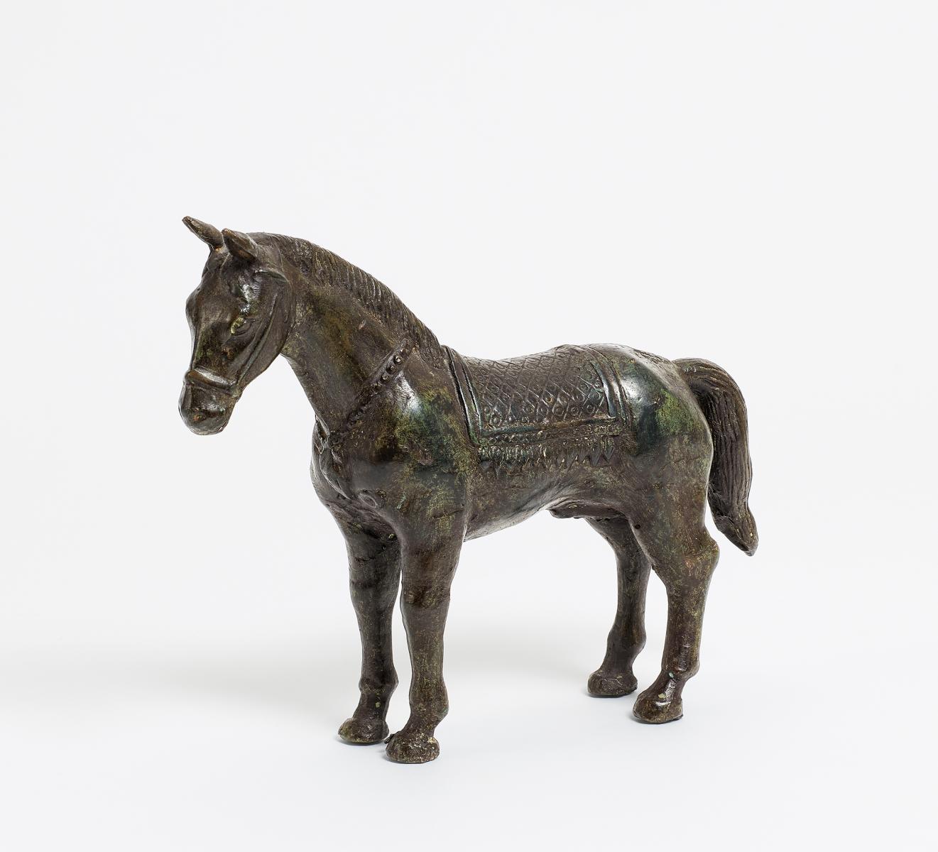 KLEINES PFERD MIT SATTELDECKE. BRONZE.