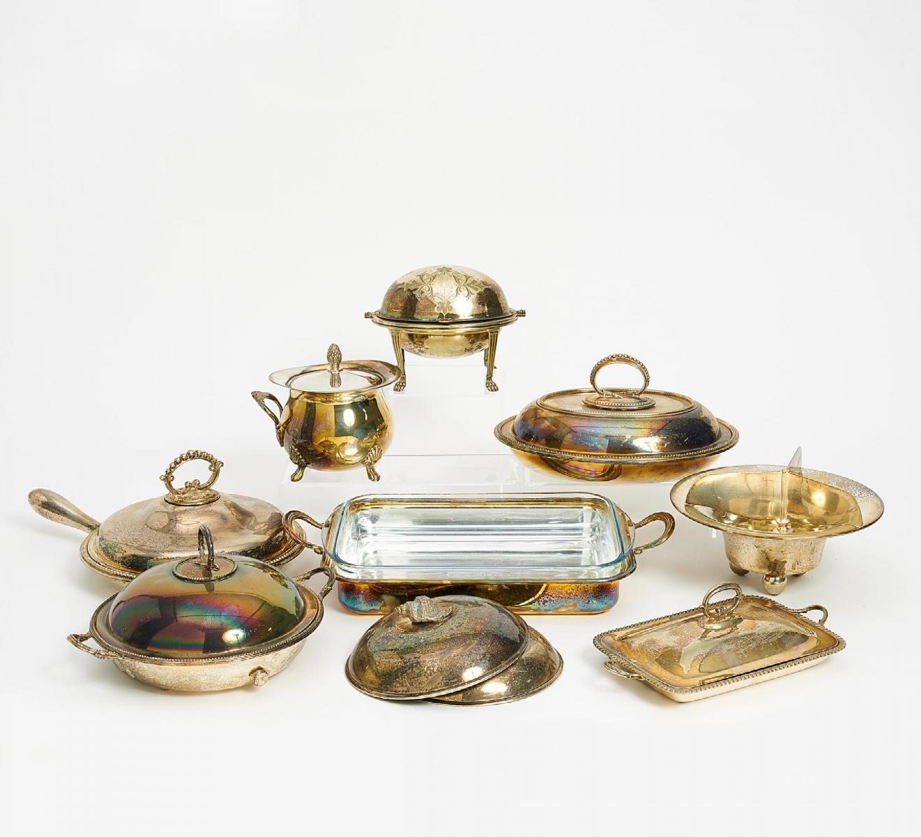KONVOLUT 5 SERVIERSCHALEN, TABLETT, SCHALE, DECKELGEFÄß.
