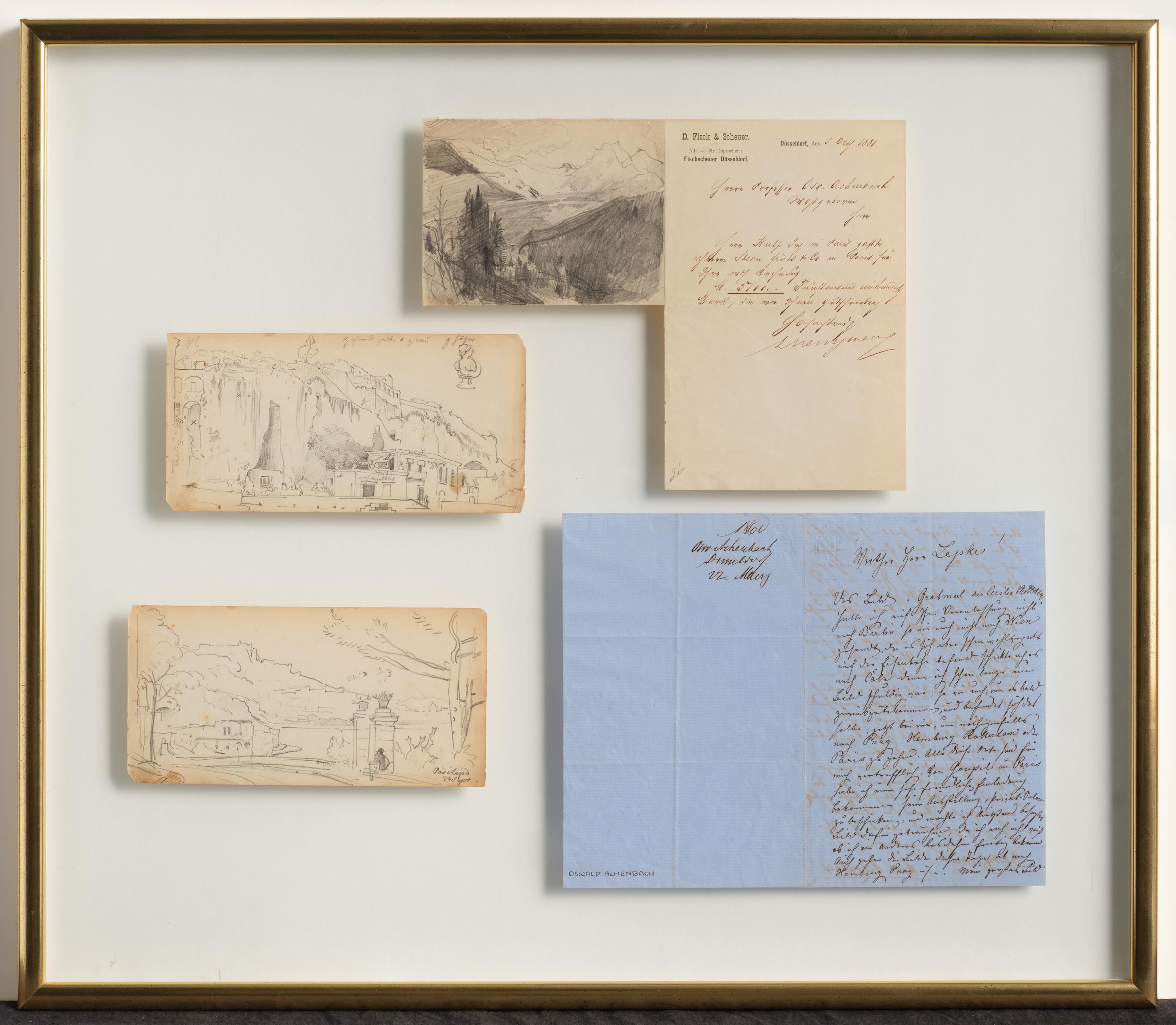 KONVOLUT AUS DREI ZEICHNUNGEN MIT ITALIENISCHEN LANDSCHAFTEN UND ZWEI BRIEFEN