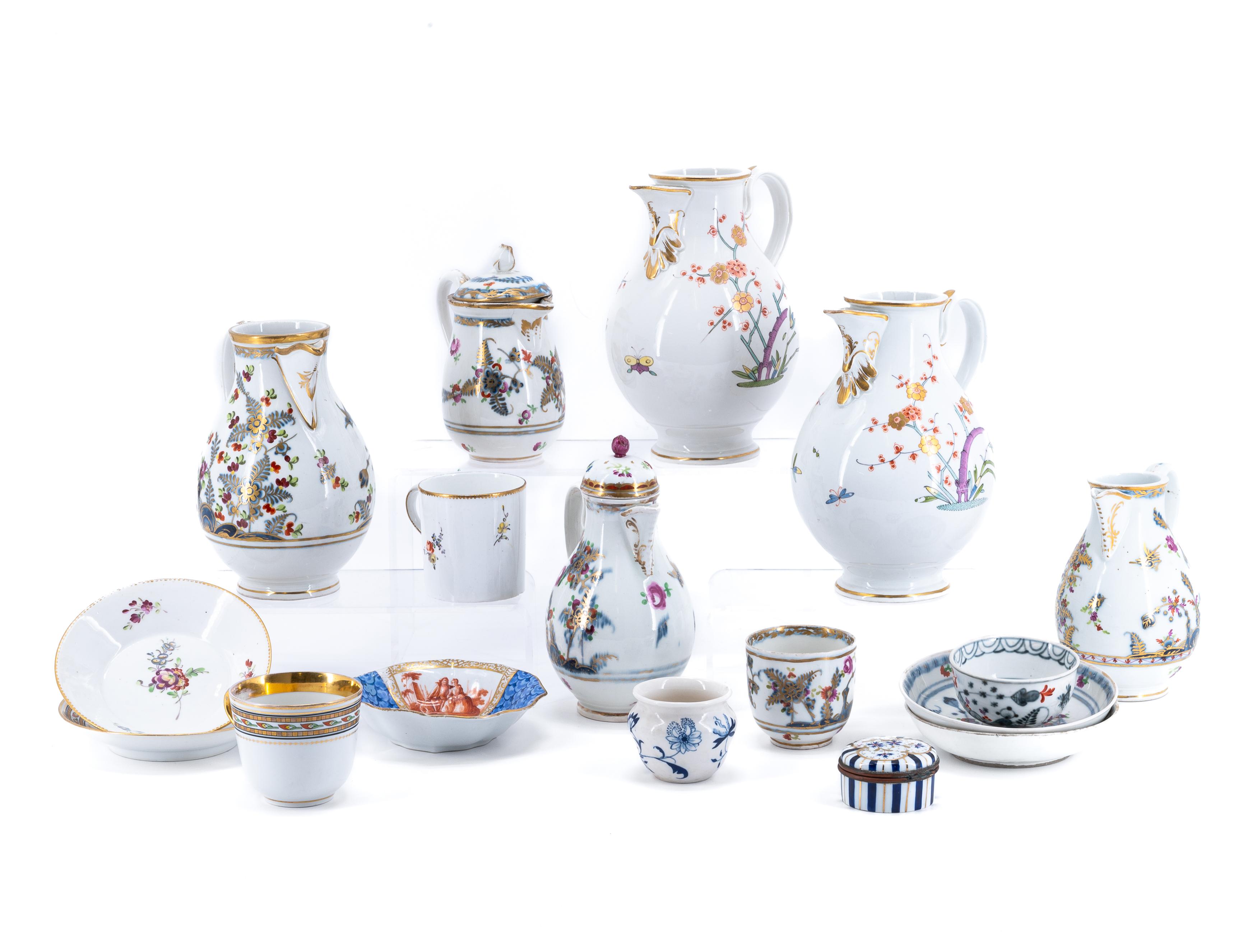 KONVOLUT VON 17 TEILEN MIT ÜBERDEKORIERTEM VOGEL-FELS-MOTIV.