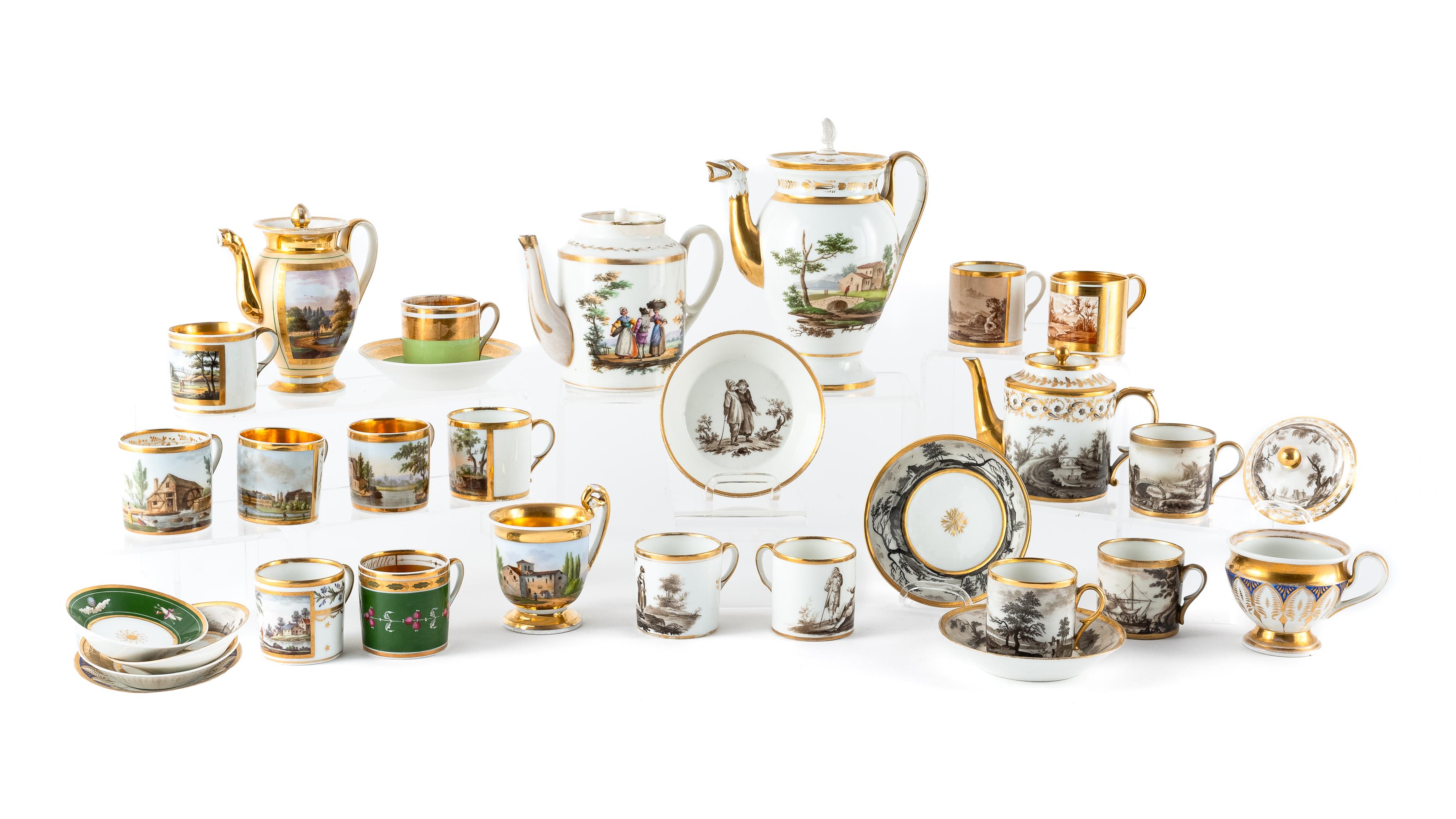 KONVOLUT VON 22 TEILEN MIT GRISAILLE UND LANDSCHAFTSSZENEN.