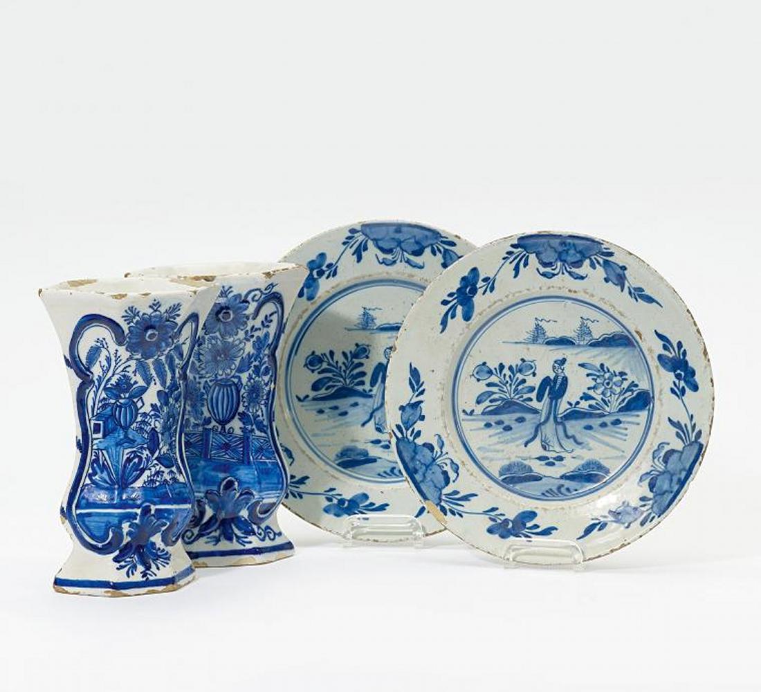 KONVOLUT ZWEI VASEN, ZWEI TELLER.