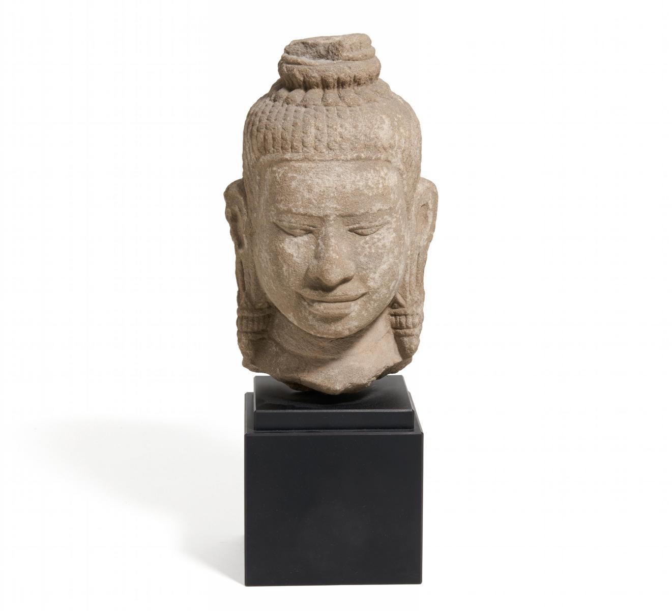 KOPF EINES BODHISATTVA MIT SCHWEREM OHRSCHMUCK.