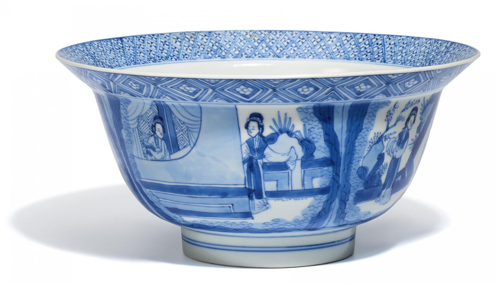 Beschreibung: Szenen aus dem chinesischen Roman "Die Westkammer" von Wang Shifu auf der Außenwandung.