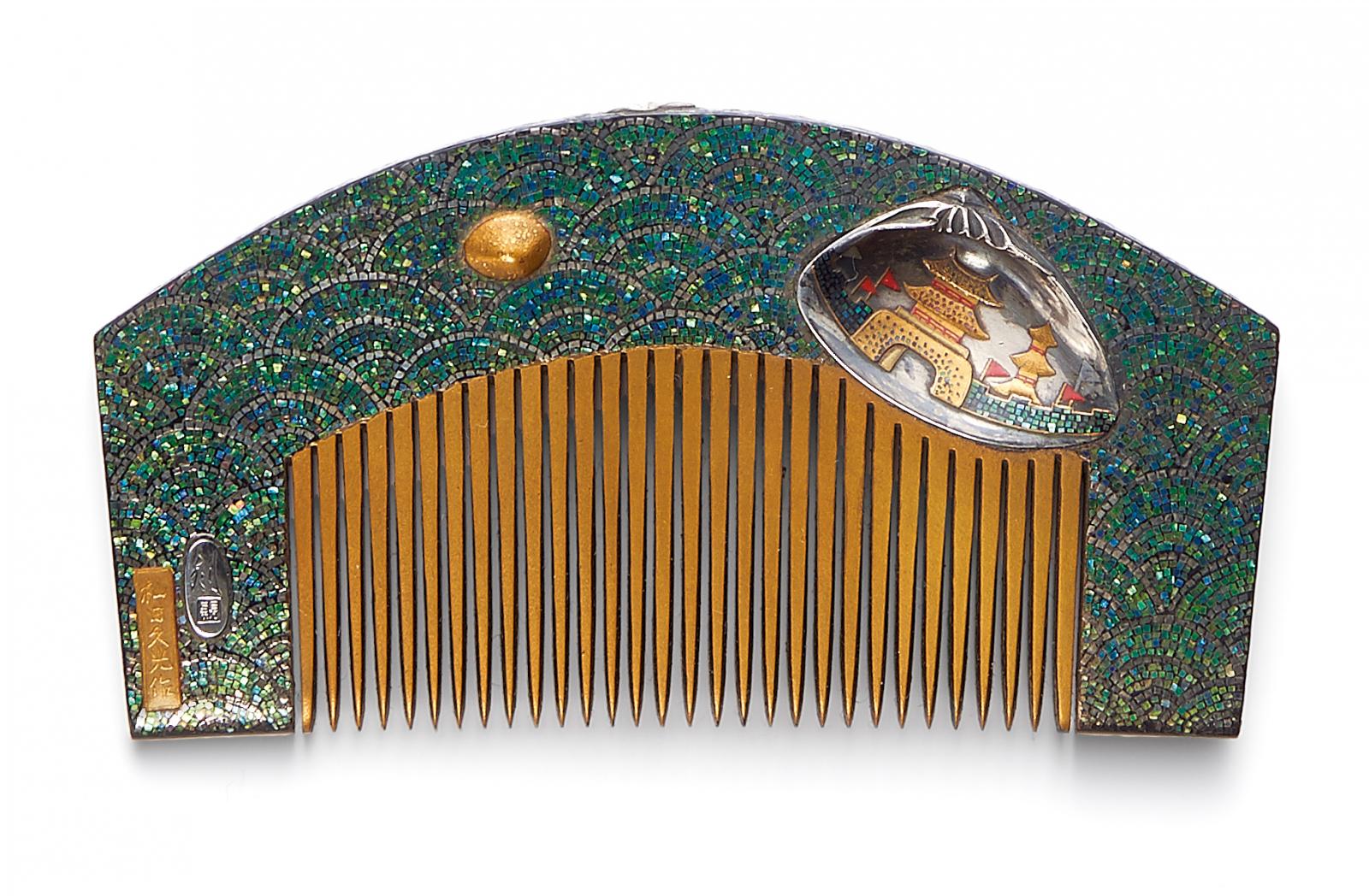 platziert, zusätzlich auf der Rückseite die offene Schale einer Awabi-Muschel, eingelegt