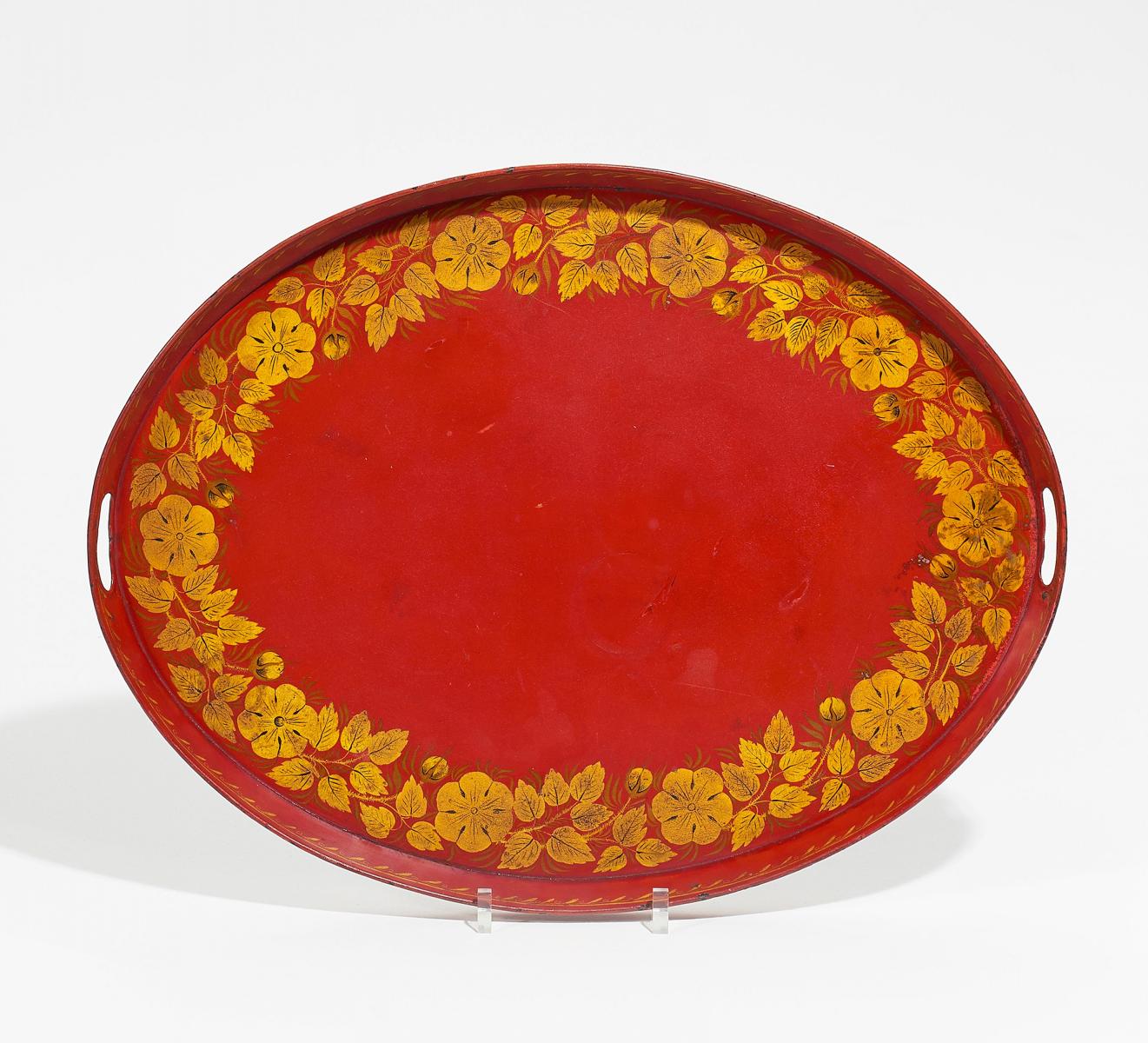 Technik: Weißblech mit rotem und goldenem Dekor.