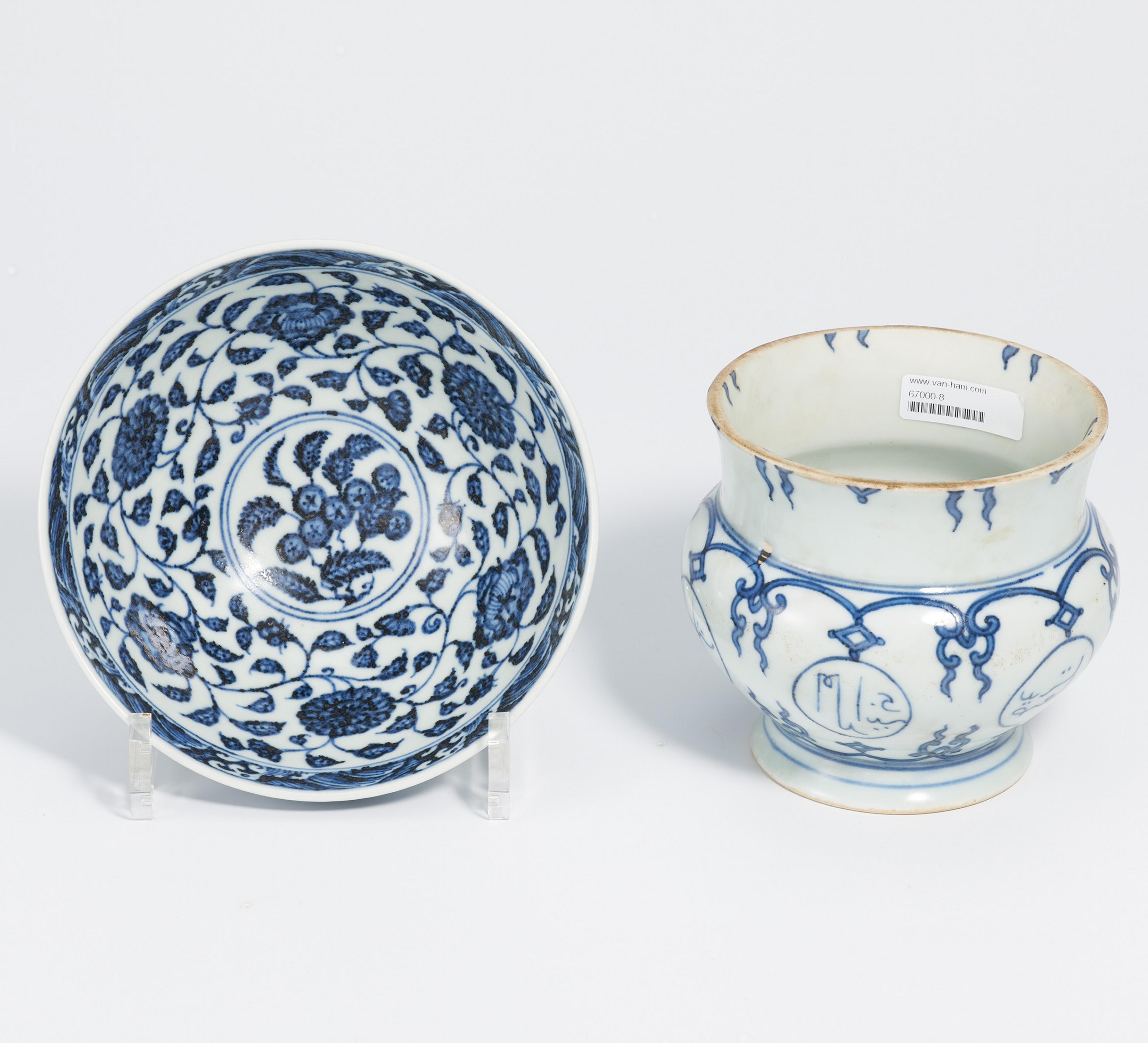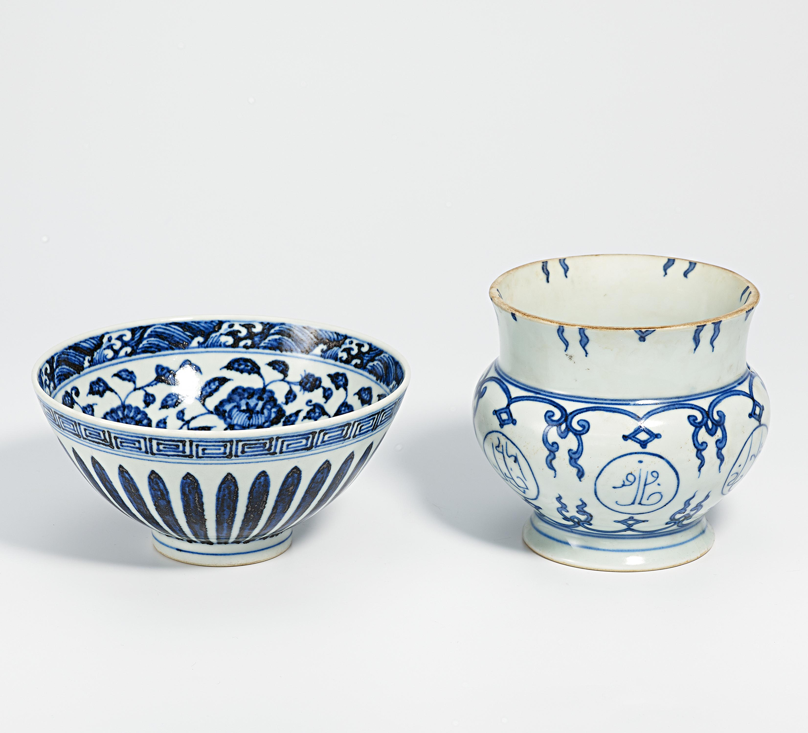 LIANZI-LOTOSSCHALE UND SPUCKNAPF MIT ARABISCHER KALLIGRAPHIE.