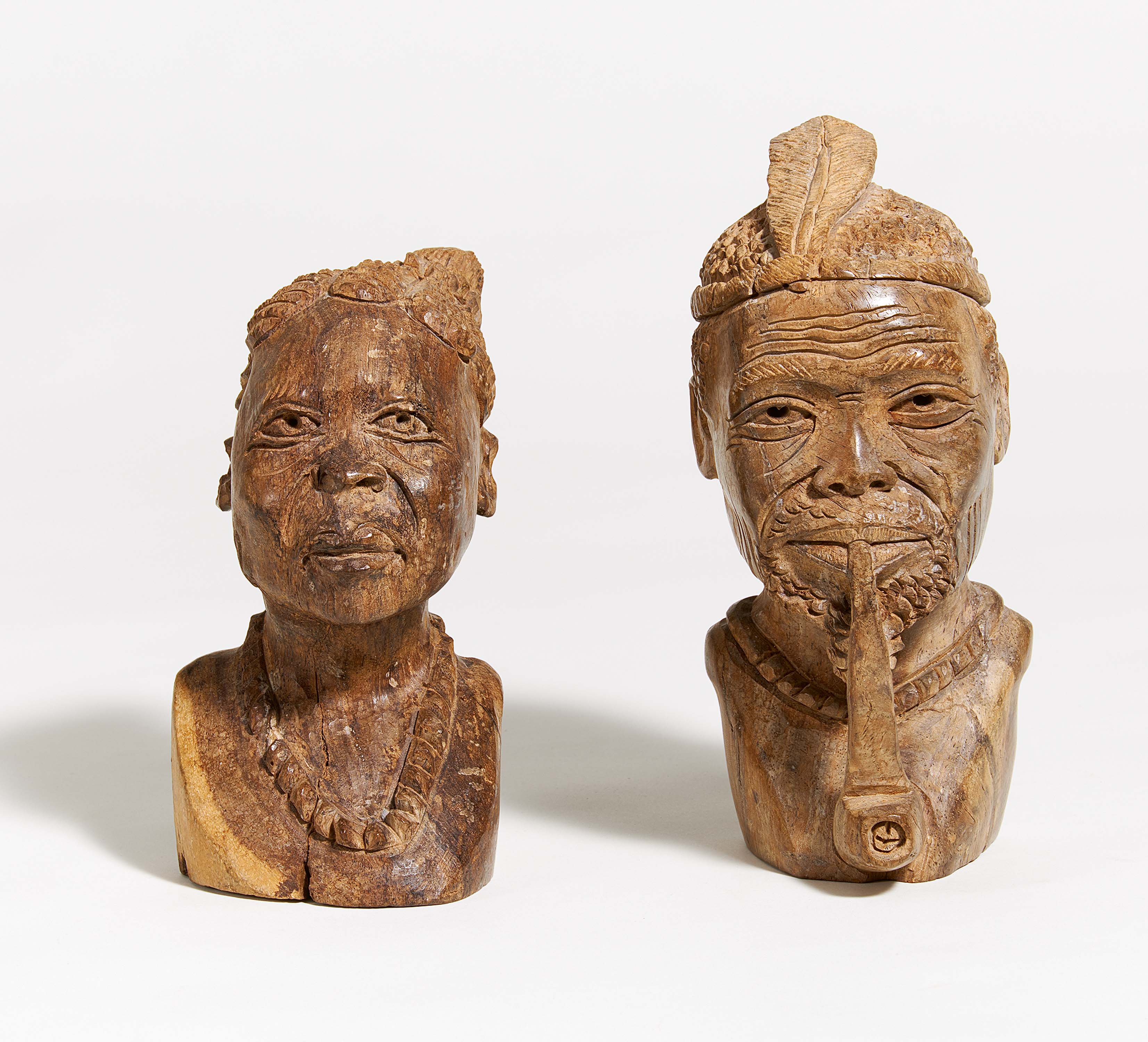 Vermutlich aus einem der Länder Ost-Afrikas stammen diese beiden Büsten, in denen sich