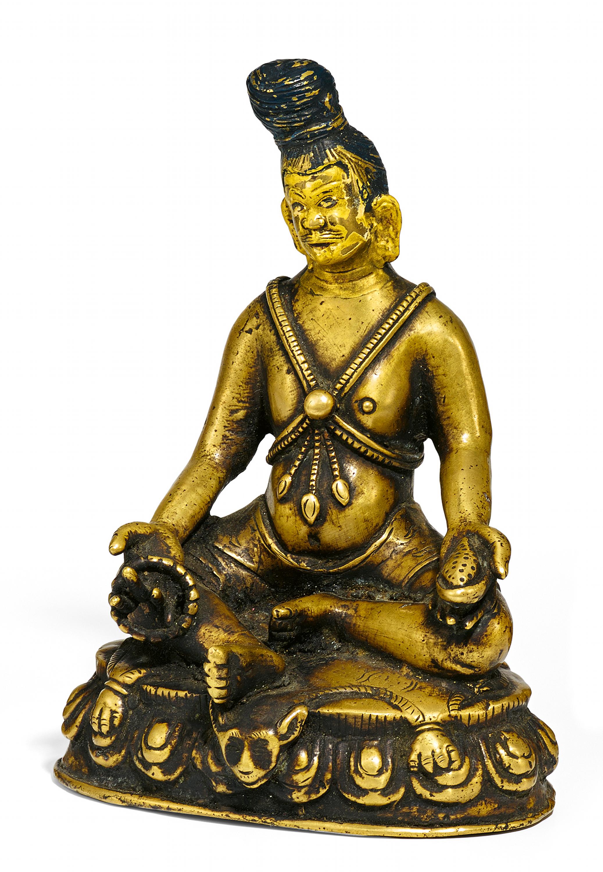 MAHASIDDHA, SITZEND MIT GEBETSKETTE UND KAPALA.