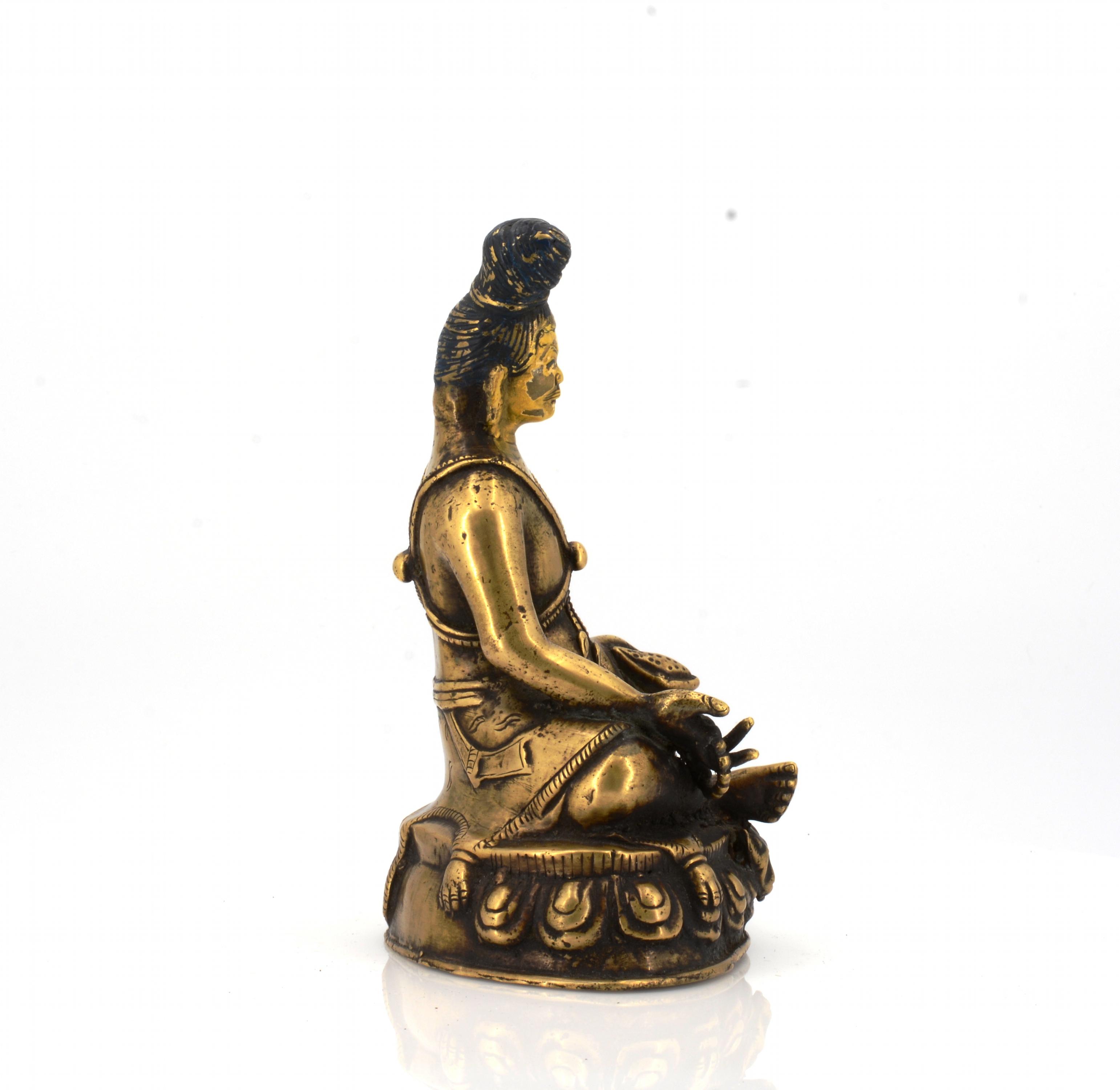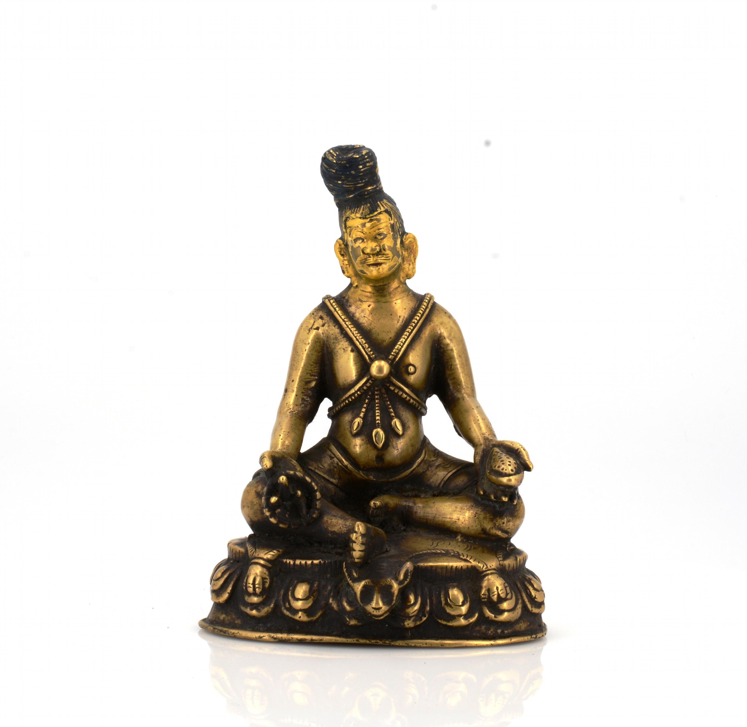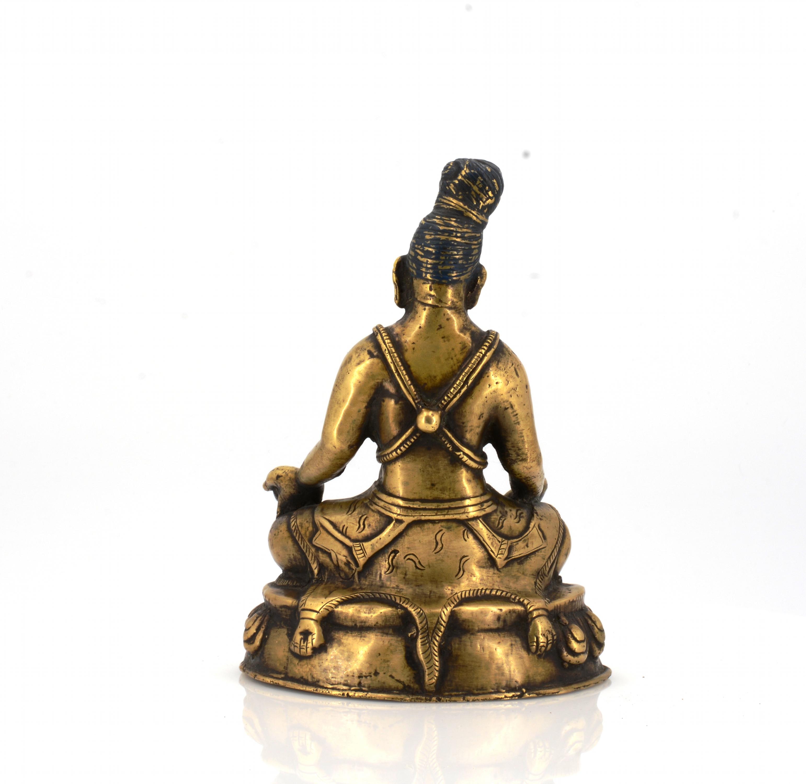 Beschreibung: Er trägt yogi-Schnüre als Brustschmuck und ist mit einem Tigerfell als dhoti bekleidet,