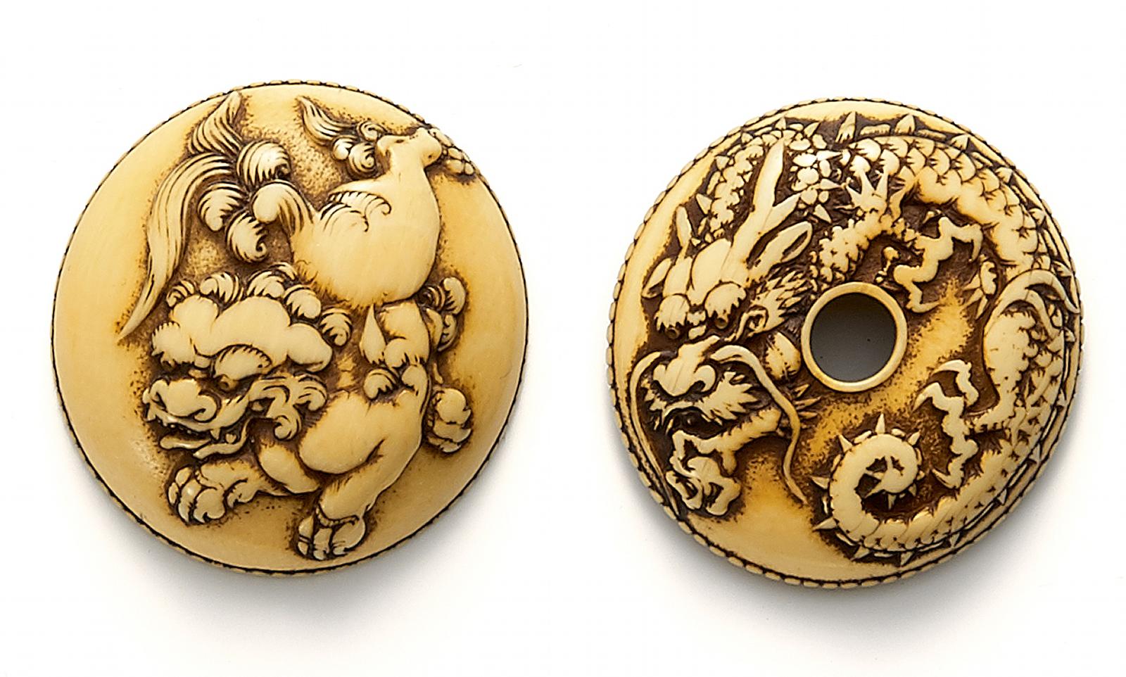 mit fein gravierten Details, rötlich-braun akzentuiert, springender Shishi mit hoch