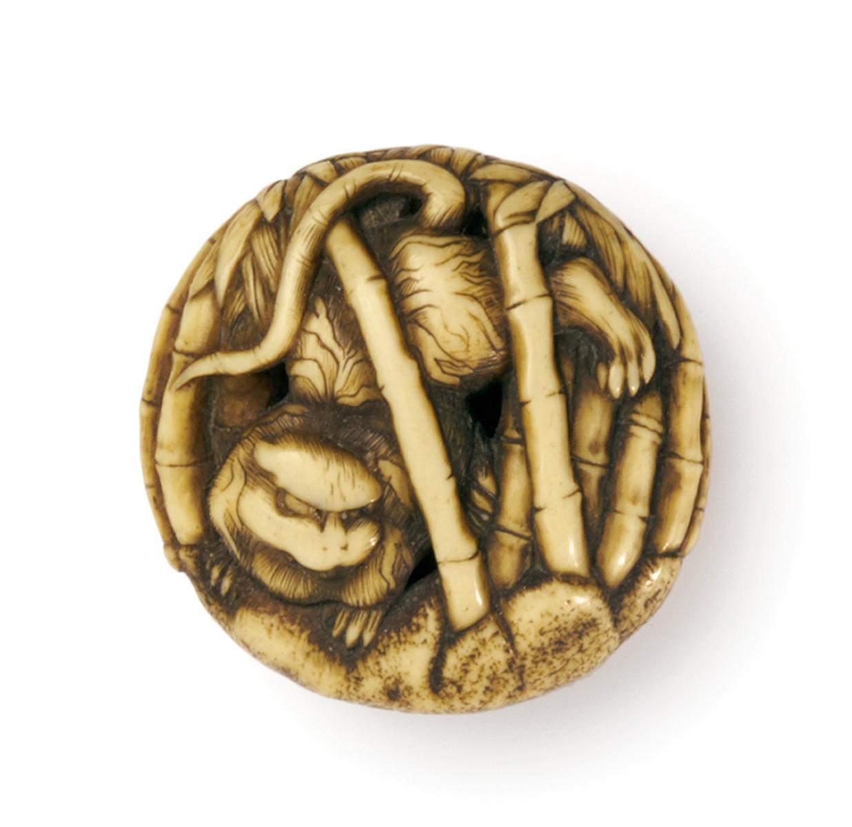 Technik: Elfenbein mit goldgelber Patina auf der Rückseite.