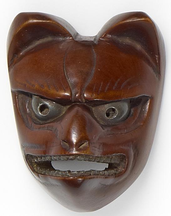 MASKEN-NETSUKE: FUCHS, KAMELIEN-HOLZ.