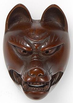 MASKEN-NETSUKE: FUCHS, PFLAUMENHOLZ.