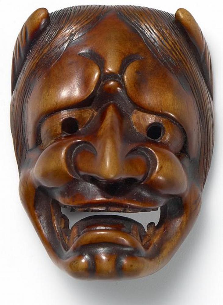MASKEN-NETSUKE: HANNYA, EICHENHOLZ.