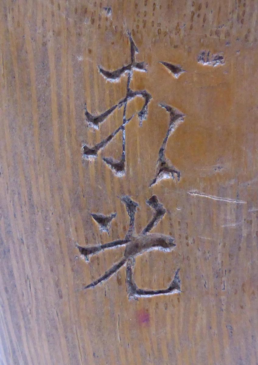 Beschreibung: Geschnitzt aus einem dickwandigen Bambus-Rohr.