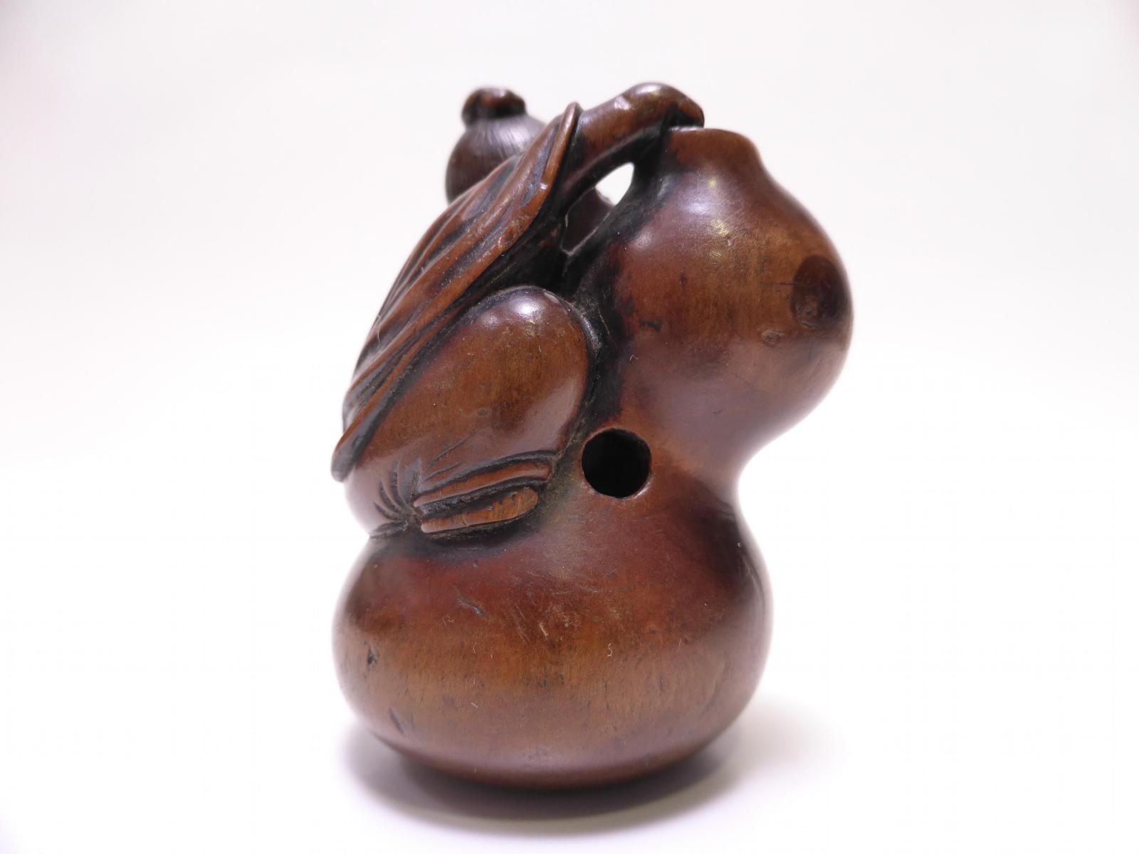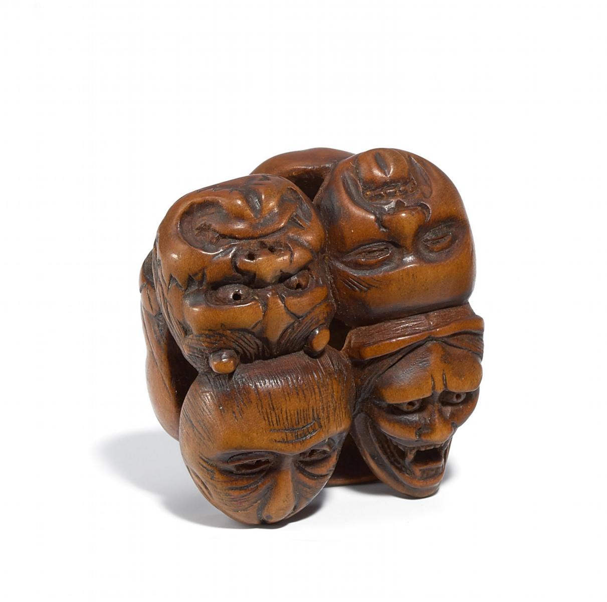 Technik: Buchsbaum, fein geschnitzt, graviert und teils dunkel akzentuiert.