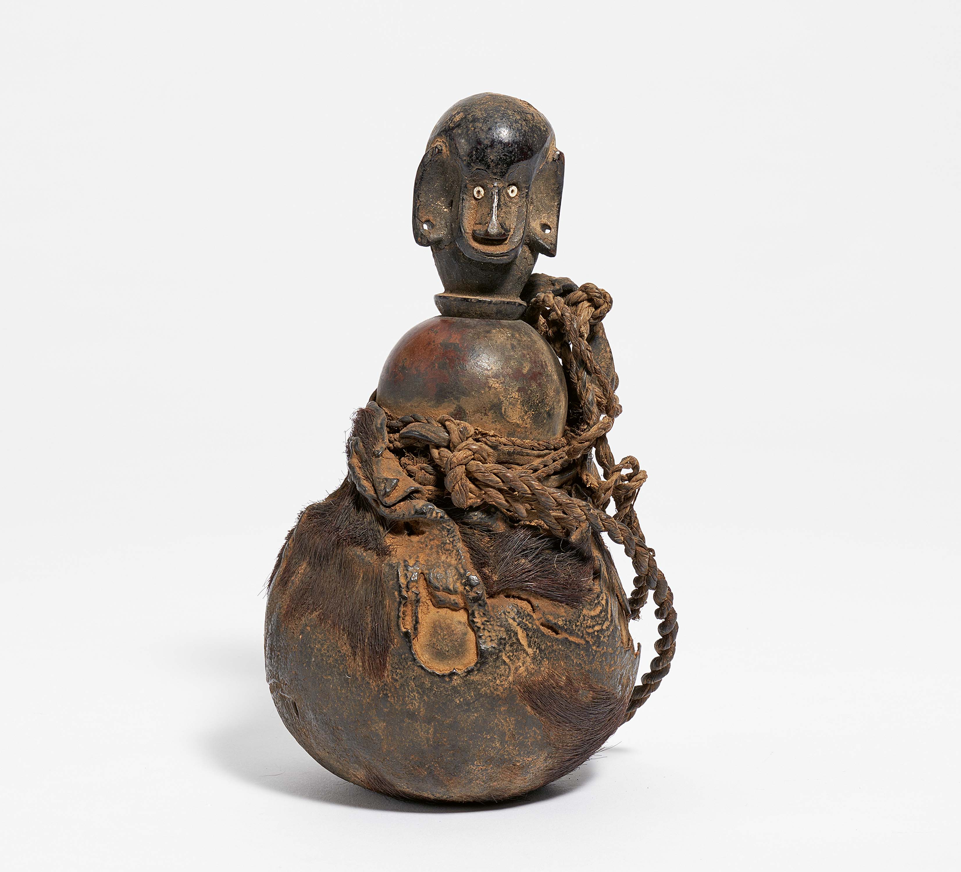 Material: Kalebasse, Leder, Pflanzenfasern u.a.