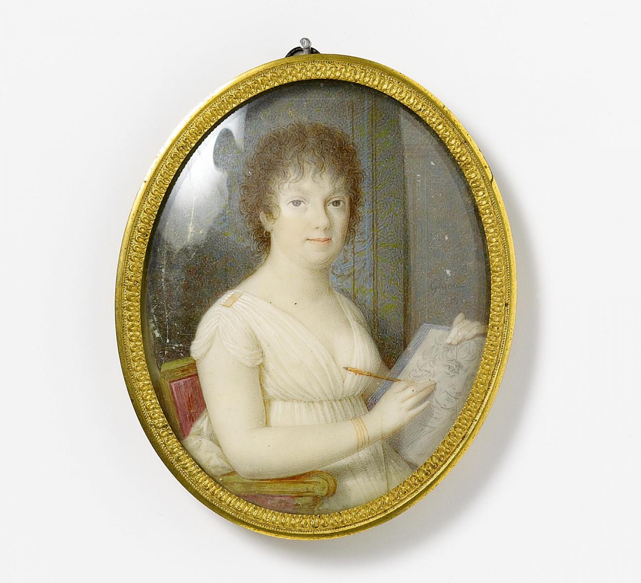 MINIATUR PORTRÄT EINER JUNGEN DAME BEIM ZEICHNEN.