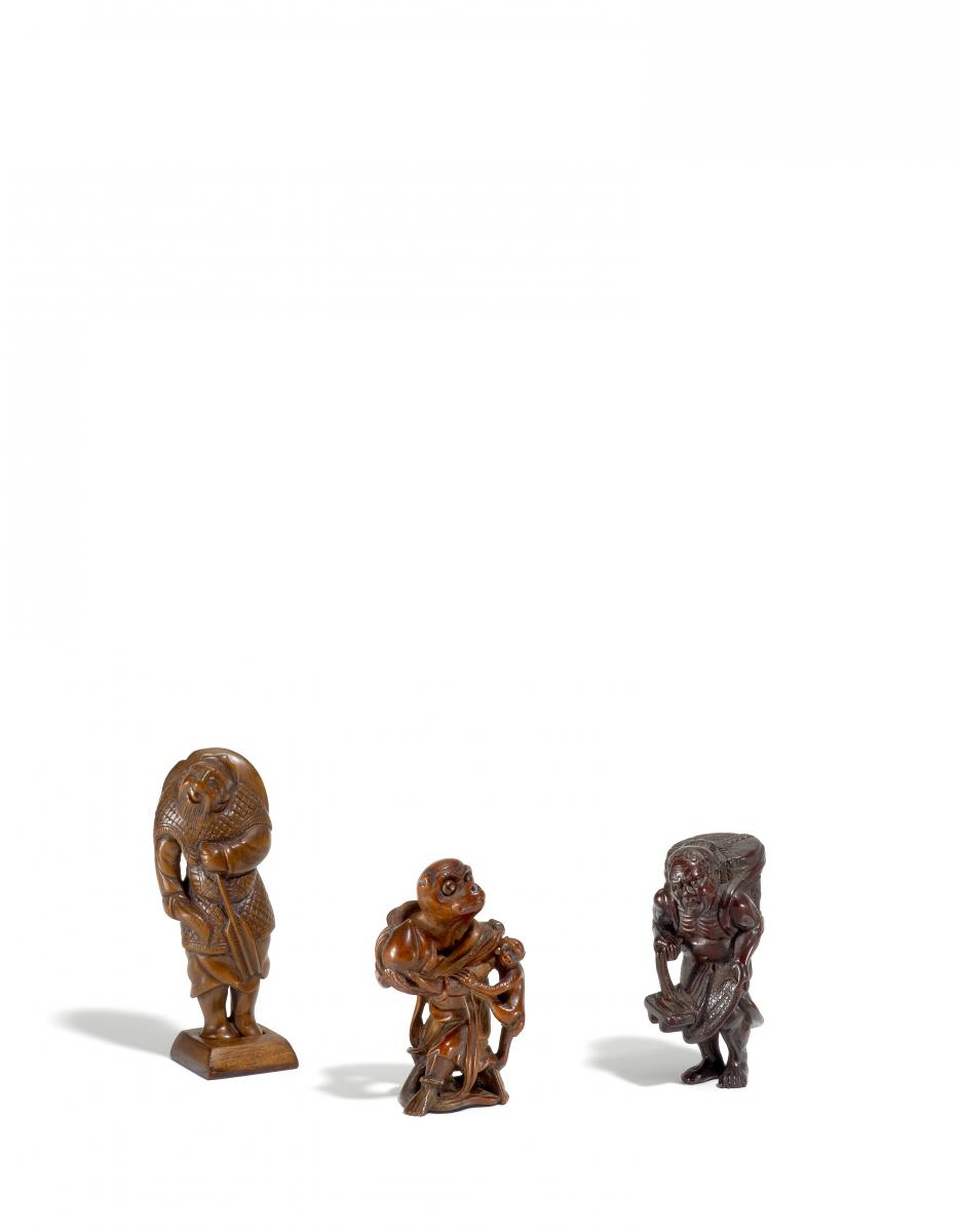 NETSUKE: BOGENSCHÜTZE, ZEDER.