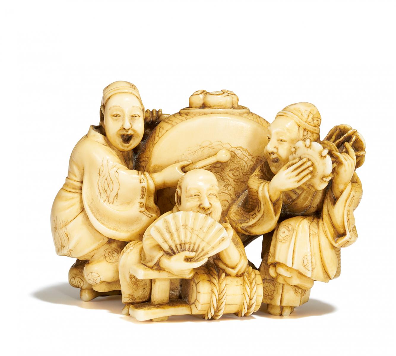NETSUKE: DREI KAGURA-MUSIKANTEN.