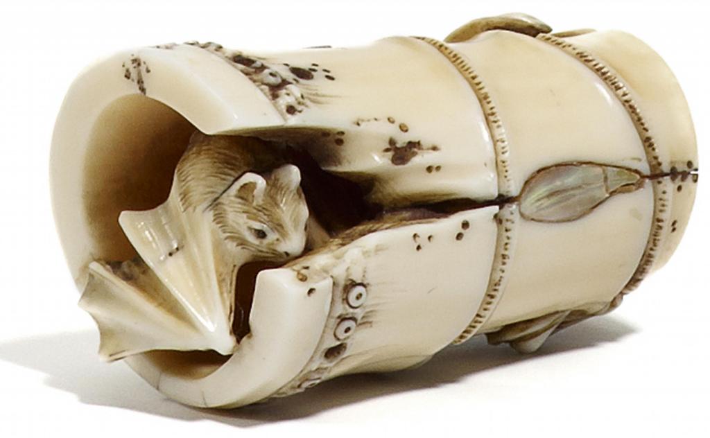NETSUKE: FLEDERMAUS, HIPPOPOTAMUS-ZAHN.