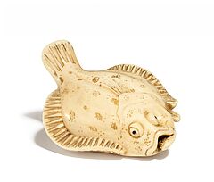 Zustand A/B. Beilage: Netsuke: Paar Schildkröten auf Matte. 19. Jh. Elfenbein. B.4,8cm. Zustand A/B. Kleiner Riss am Schwanz.