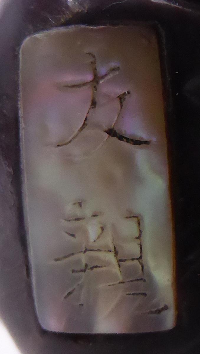 Signatur: Tomochika auf rechteckiger Kartusche aus Perlmutt, vgl. MCI S. 855 ff.