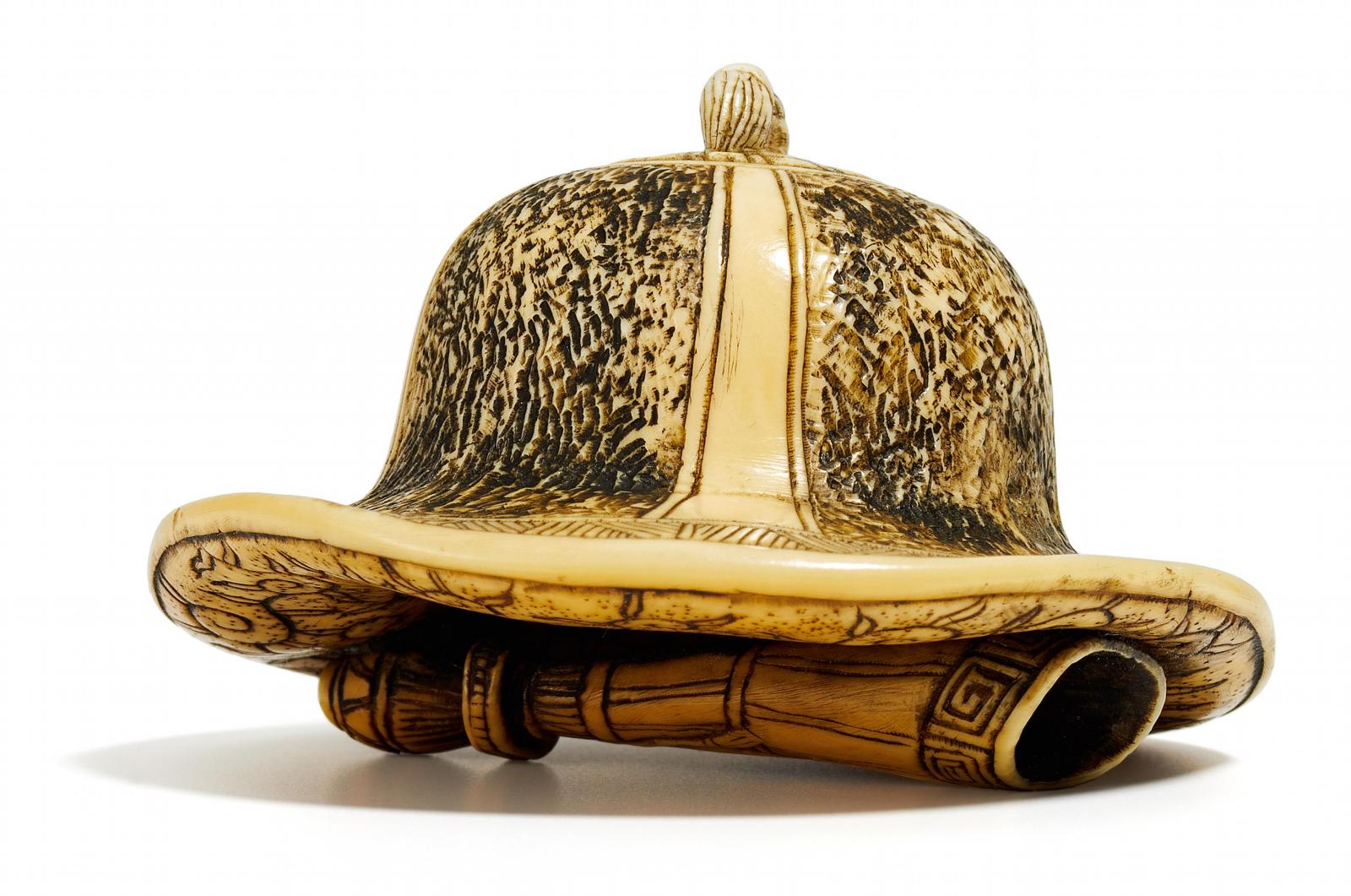 Beschreibung: Hut eines Portugiesen, darunter ein Teleskop, beides mit Fernando Mendez Pinto assoziiert.