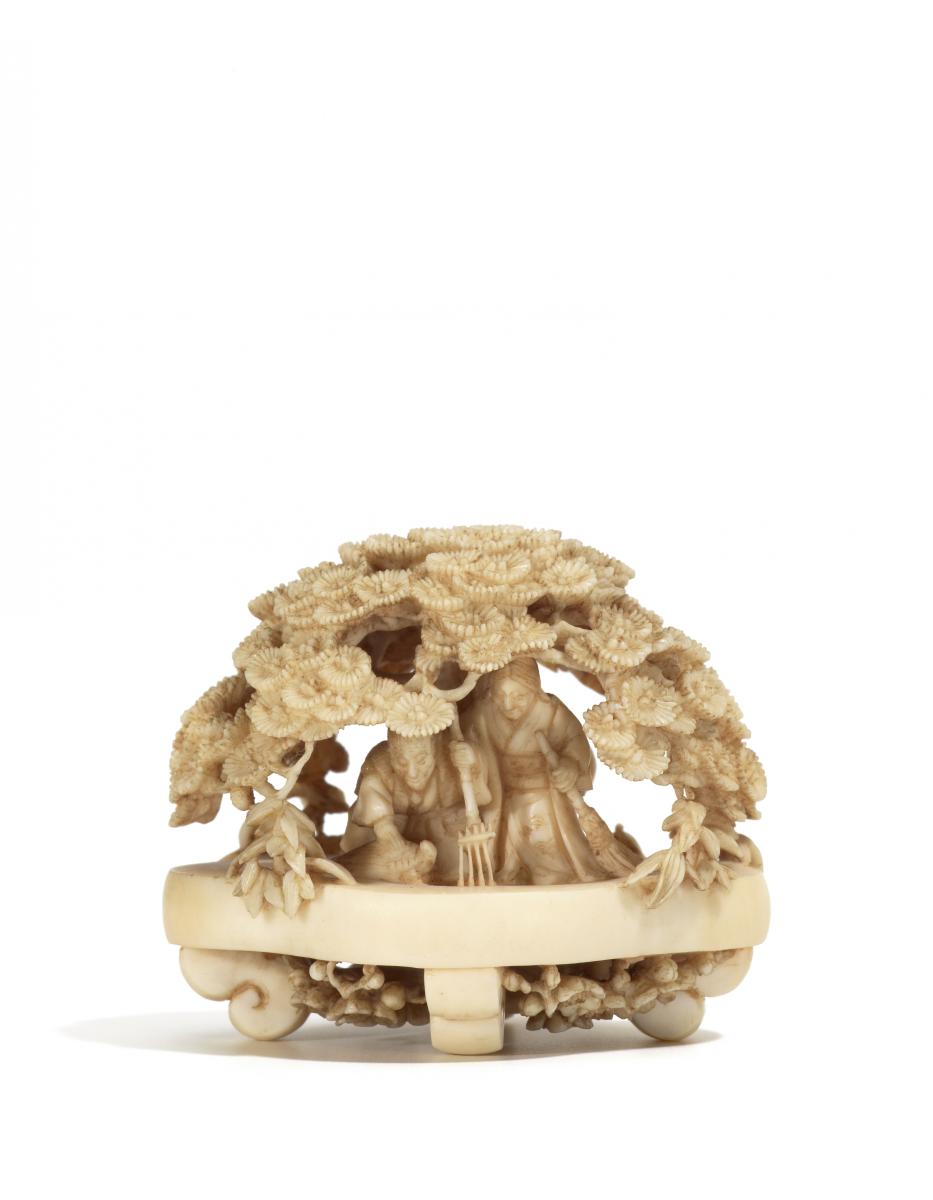 NETSUKE: JO UND UBA, ELFENBEIN.