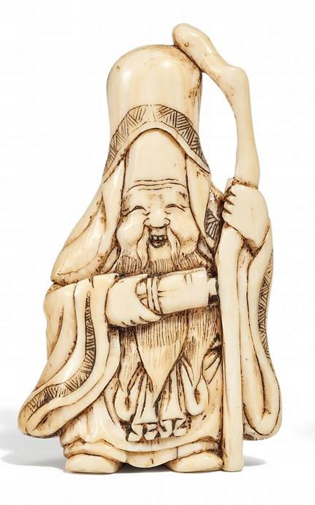 NETSUKE. JURÔJIN. ELFENBEIN.