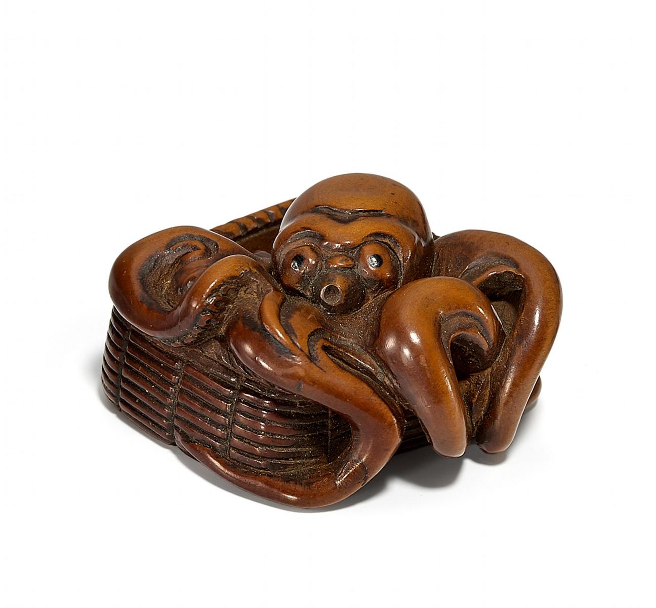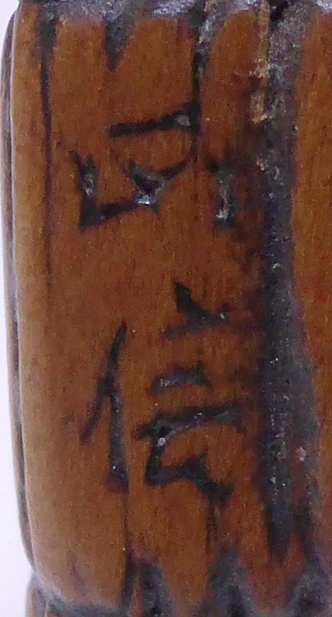 Technik: Holz, Augen eingelegt aus schwarzem Horn.