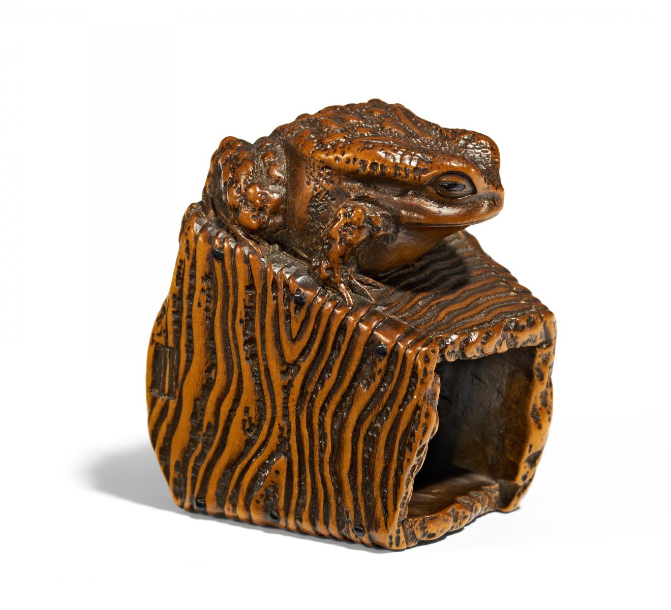 NETSUKE: KRÖTE AUF HOLZEIMER.