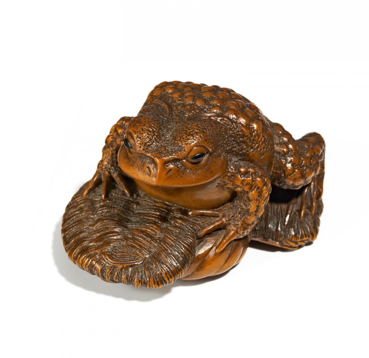 Technik: Buchsbaum, sehr fein geschnitzte, gravierte und dunkel akzentuierte Details, die Augen eingelegt aus schwarzem Horn.