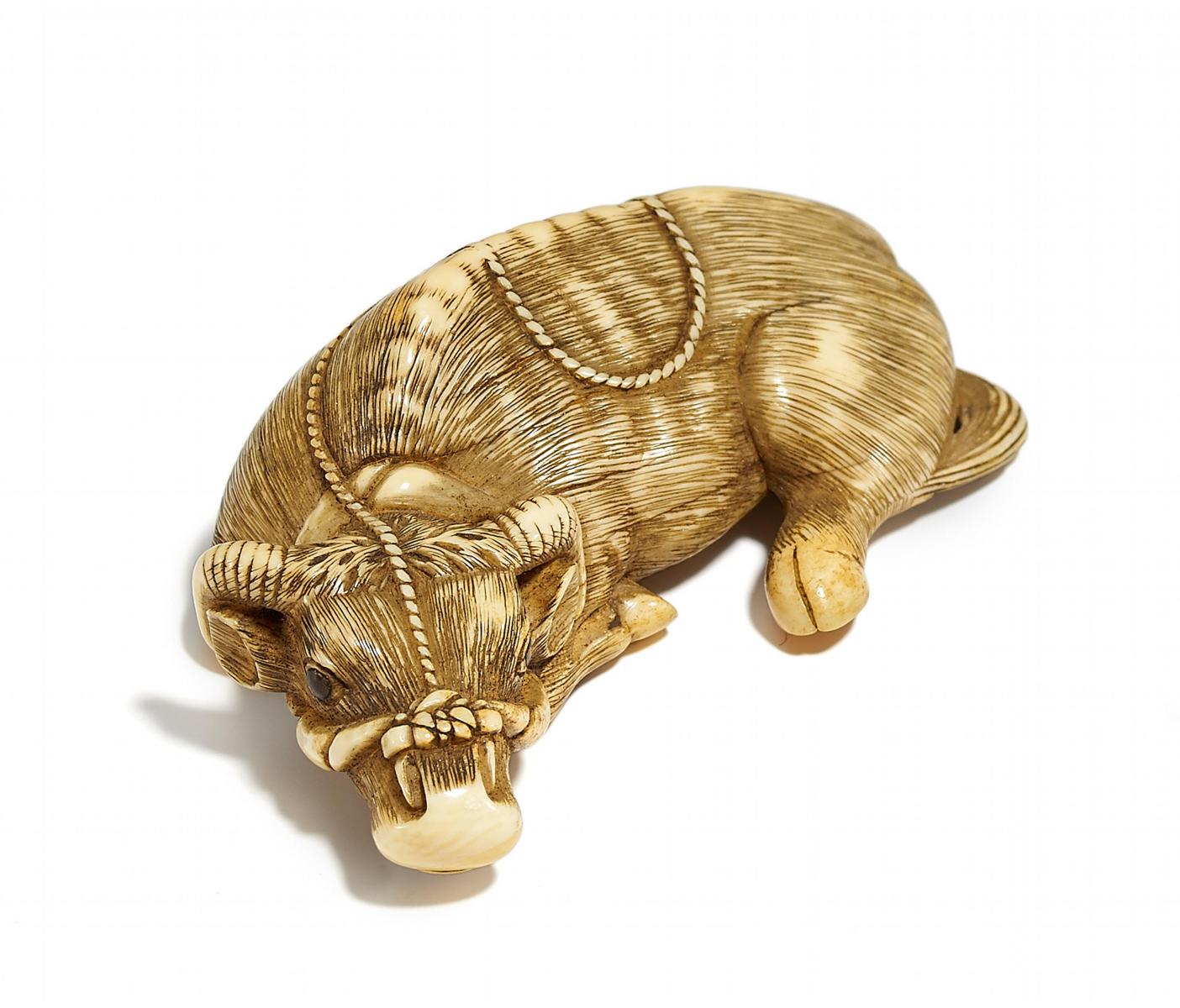 NETSUKE: LIEGENDER OCHSE.