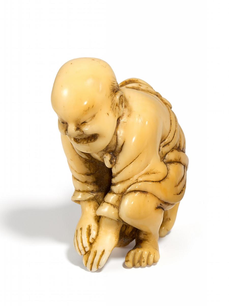 NETSUKE: ÄLTERER MANN, HOCKEND.