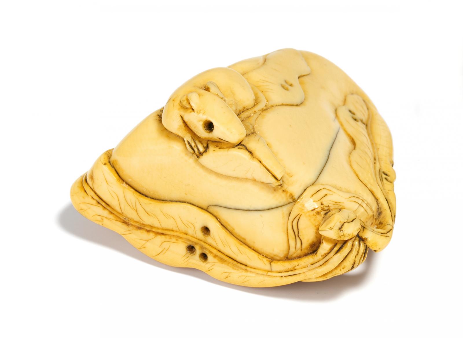 NETSUKE: MAUS AUF GROßEM DAIKON.