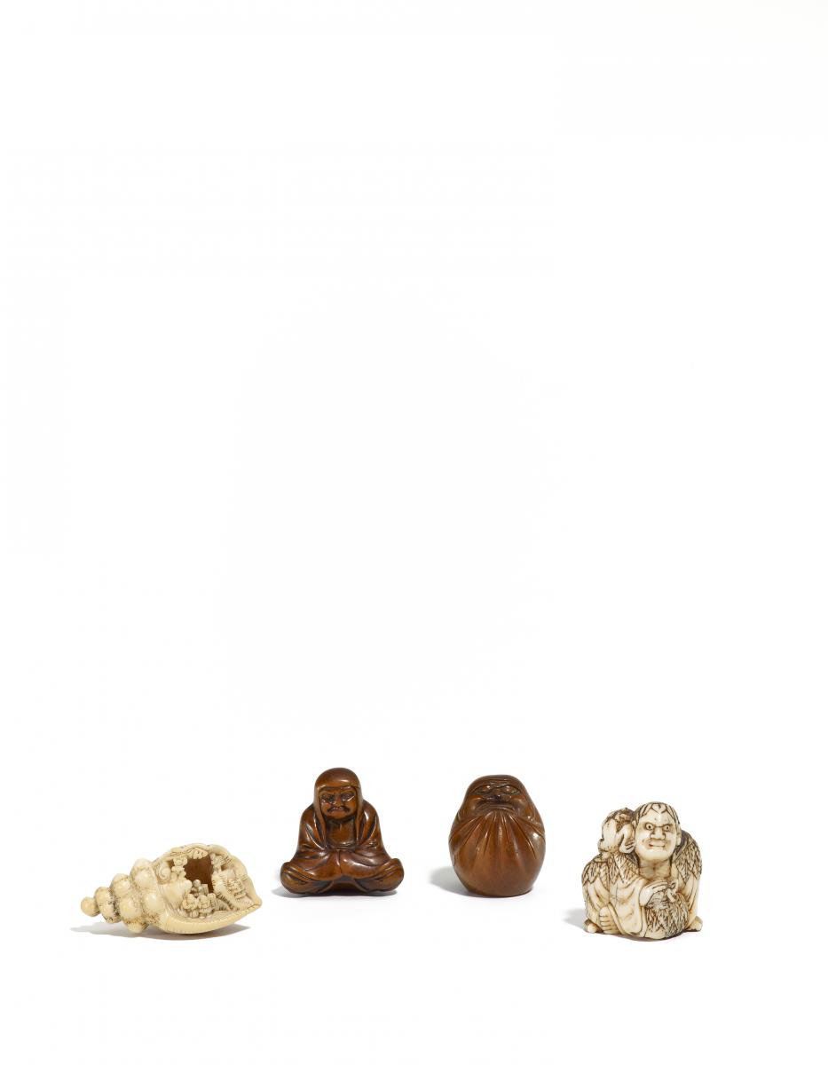 NETSUKE: MUSCHELHORN, HIPPOPOTAMUS-ZAHN.