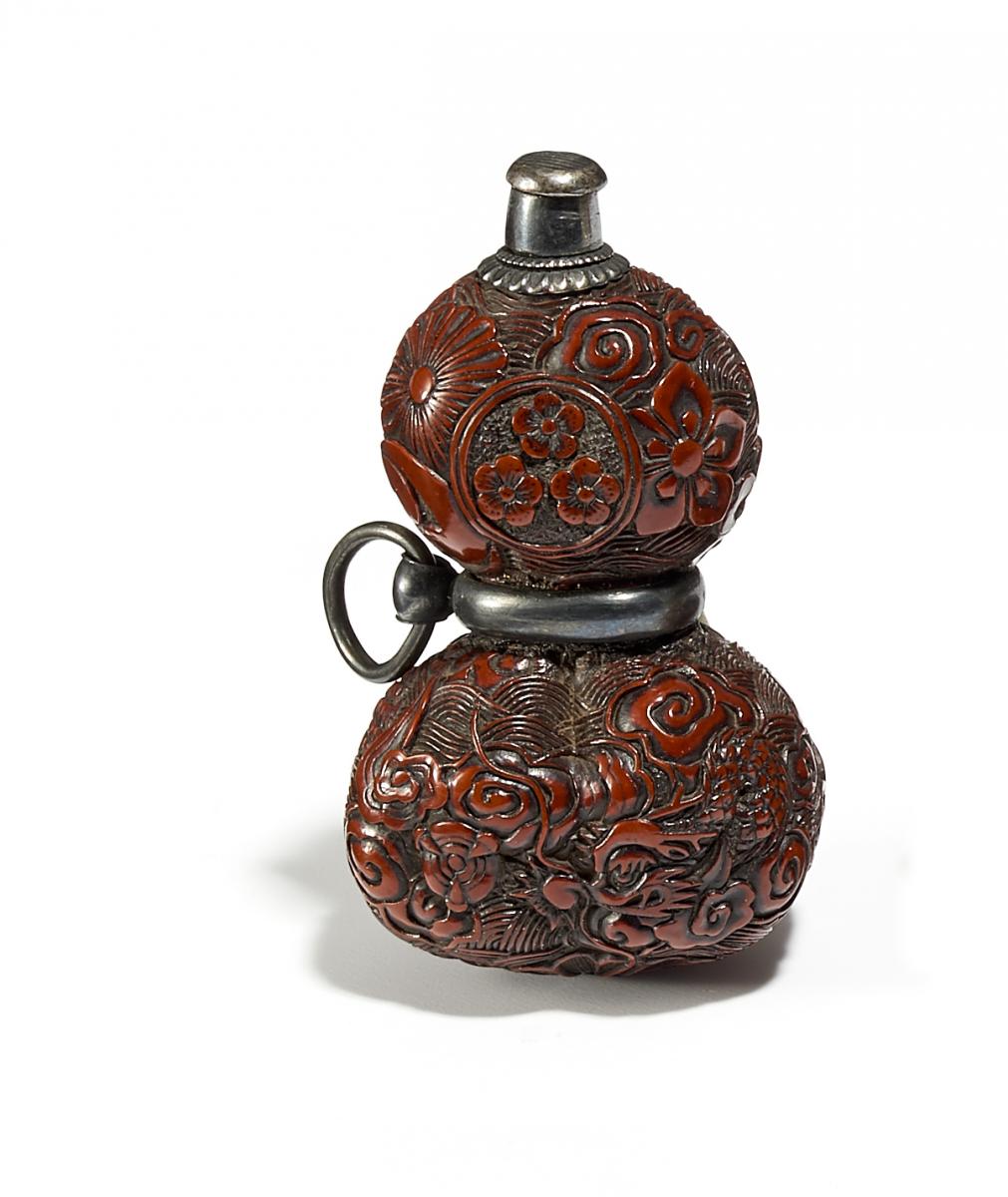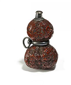 zwischen Wolkenwirbeln, sehr fein gearbeitet. Feiner Stöpsel und Ring um die Taille aus