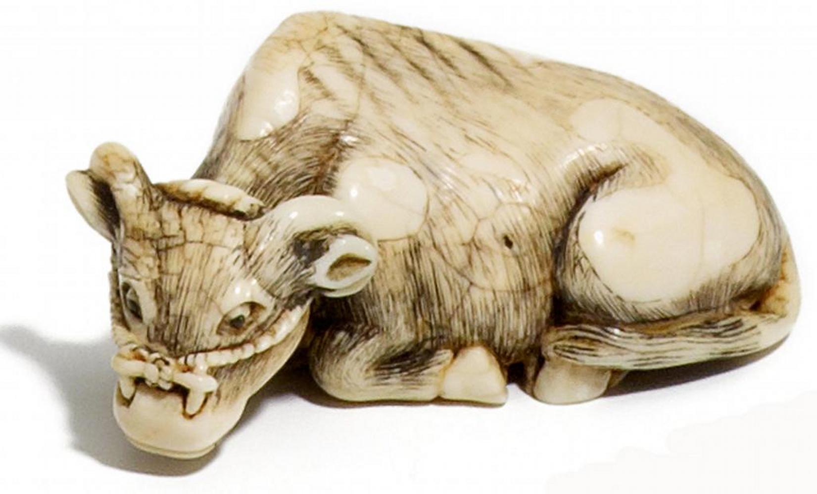 NETSUKE: OCHSE, ELFENBEIN.