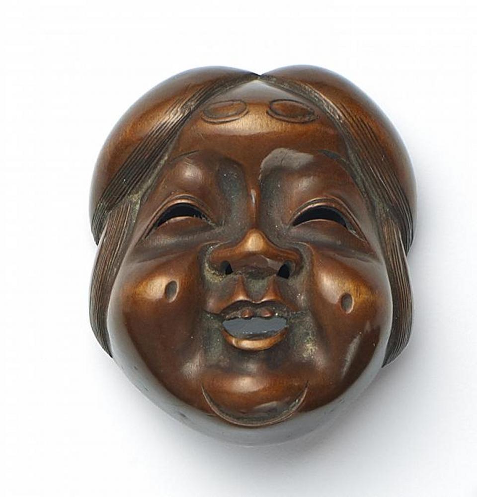 NETSUKE. OKAME-MASKE. BUCHSBAUM. SIGN.: SHÛZAN.